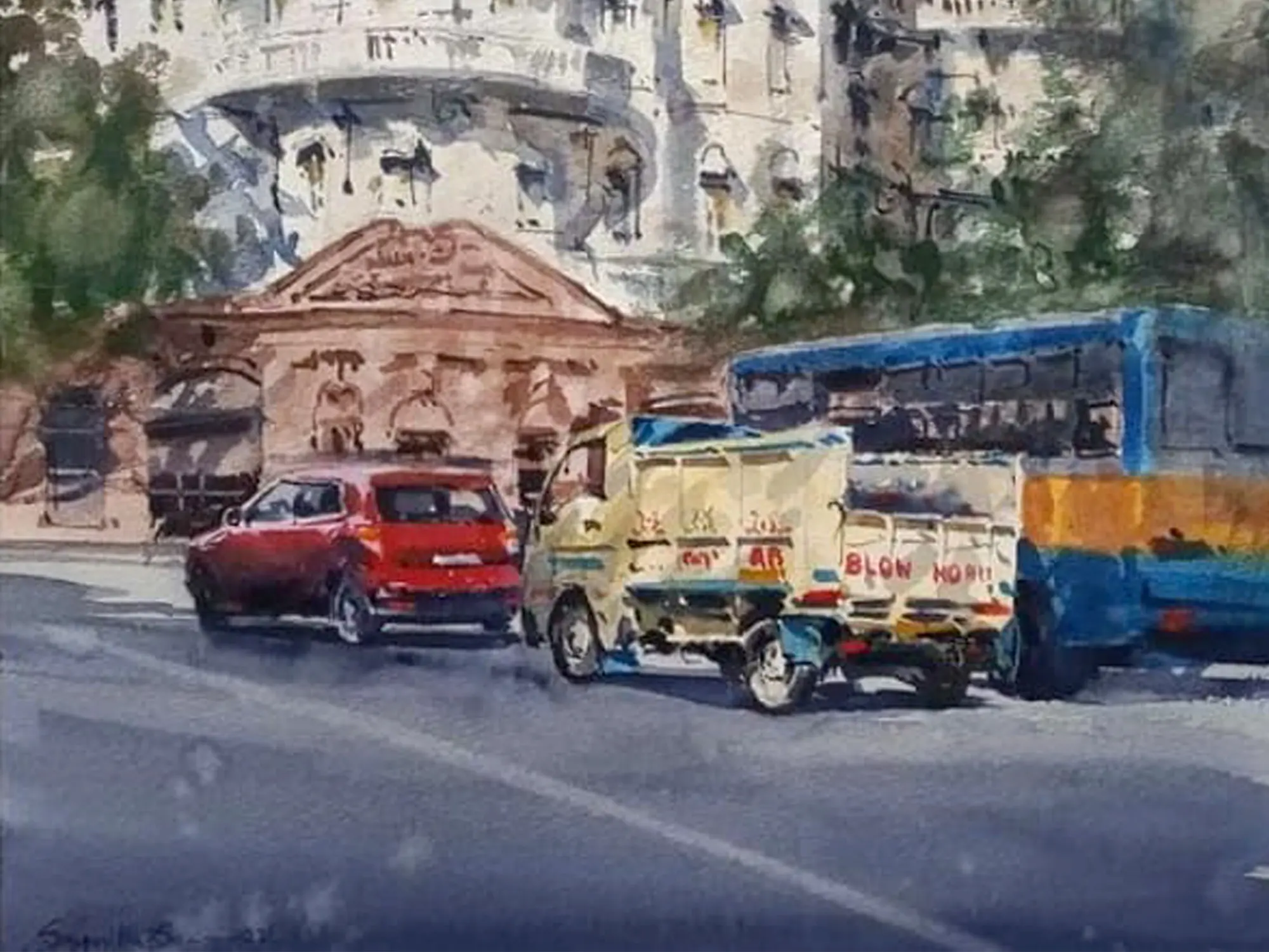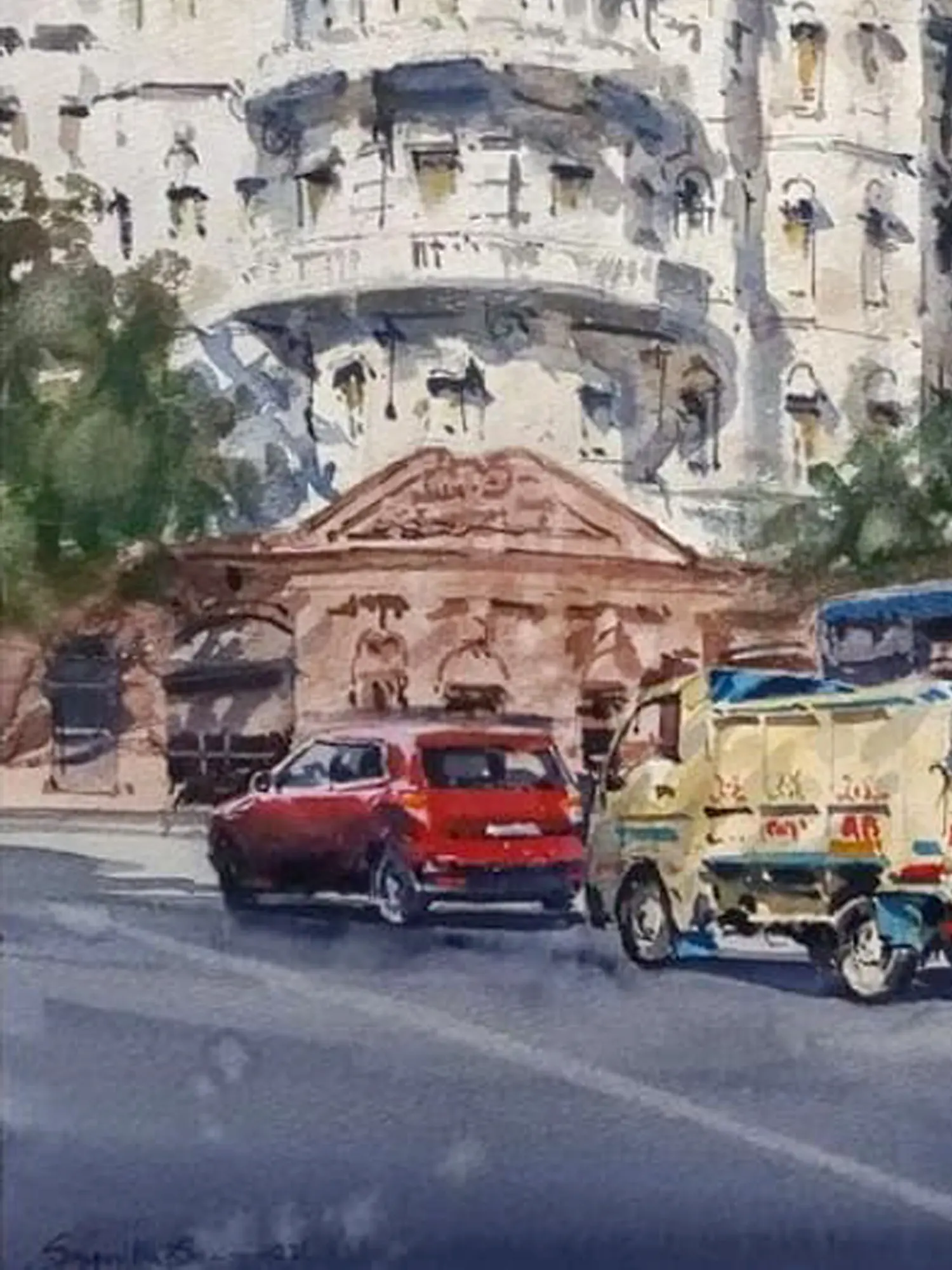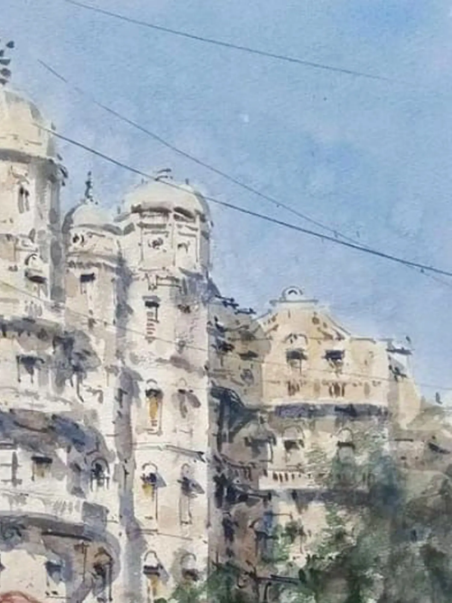Embark on a journey through time with "Esplanade Mansions Of Kolkata," a captivating watercolour painting that pays homage to the architectural stunners of India's past. Nestled amidst bustling streets and crowded bazaars, these grand edifices stand as silent witnesses to the passage of history, their ornate facades echoing tales of the past. The artist's delicate brushwork and subtle palette evoke a sense of nostalgia and longing, inviting viewers to immerse themselves in the faded grandeur of a bygone era.