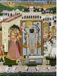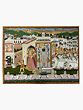 Shrinathji, a form of Lord Krishna, is deeply revered in Nathdwara, Rajasthan. The legend tells of Krishna's miraculous appearance as Shrinathji, saving the villagers from a great danger. This event cemented his presence in the region, transforming the humble village into the pilgrimage site we know today. The evening Aarti is a profoundly significant ritual, symbolizing the offering of light and devotion to the deity. It’s a moment when devotees gather, chanting hymns, offering prayers, and expressing their deepest reverence for the Lord. This painting perfectly embodies the spirit and solemnity of this beautiful ceremony. The meticulous detail in depicting the various elements of the aarti, from the offerings to the devotees, showcases the artist’s deep understanding and respect for the tradition.