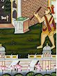 Pichhwai, meaning "back-screen," is a unique form of Rajasthani painting traditionally used as backdrops for Shrinathji’s deity image in the temple. These vibrant textiles, using natural pigments and detailed designs, depict scenes from Krishna's life, mythological tales, and the rituals surrounding his worship. The genre’s evolution is deeply intertwined with the devotional practices of the Vallabhacharya sect, who consider Shrinathji to be a living manifestation of Krishna. Each brushstroke is a testament to generations of artistic heritage, passed down through families of skilled artisans like Dheeraj Munot, who created this masterpiece. The rich history and cultural significance make every Pichhwai painting a treasured piece of Indian art.