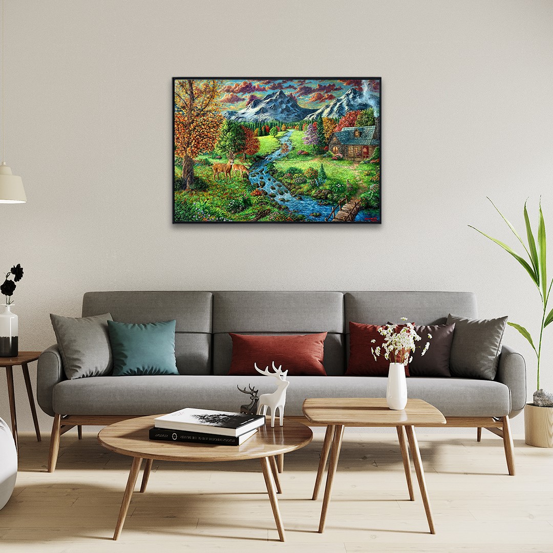 Every inch of the canvas is infused with rich colors, textured, and mixed to bring vitality to the artwork. The light of an evening sun, smoldering and lively has been recreated marvelously, which falls on every object to give it an ethereal feel. Inspired by classic landscape paintings, this oil painting brings heaven to your space, giving you a comfortable and effortless peek into a paradise that will never be lost!