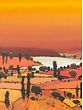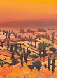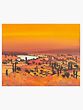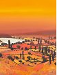 This breathtaking acrylic on canvas landscape, "Evening Landscape," by the renowned artist Hari Dhongade, captures the ethereal beauty of a sunset over a rolling countryside. The warm, vibrant hues of the painting evoke a sense of tranquility and wonder, inviting the viewer to lose themselves in the artist's masterful depiction of nature's splendor. The rich oranges and reds of the setting sun paint the sky in a dramatic display, mirroring the fiery chariot of Helios, the Greek sun god, as he makes his nightly descent. The landscape below, a patchwork of soft pinks and oranges, suggests fertile fields and quiet villages, reminiscent of the idyllic landscapes celebrated in ancient pastoral poetry. The painting's composition, with its carefully placed lines and contrasting colors, creates a visual rhythm that is both calming and stimulating, leading the eye on a journey across the canvas. The use of bold brushstrokes adds a dynamic texture, further enriching the sensory experience of viewing this artwork.