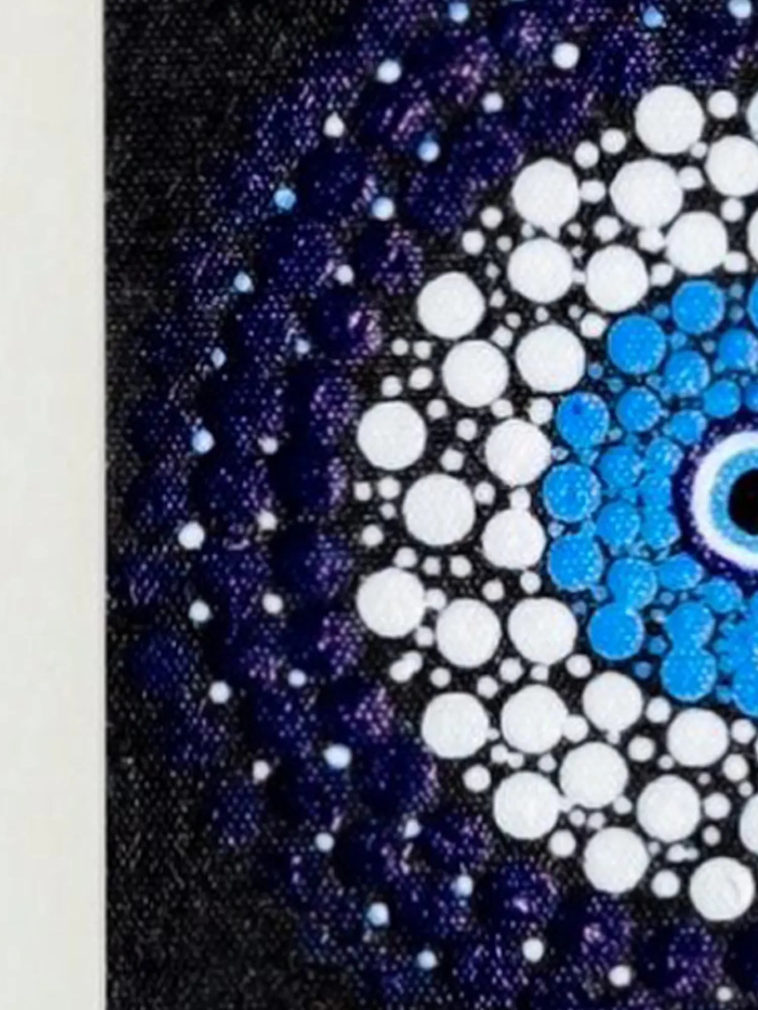 The intricate mandala design incorporates the protective evil eye motif, blending tradition with artistry. Singh's creation not only serves as a visually appealing piece but also channels the ancient belief in the power of the evil eye as a means of spiritual protection and well-being.