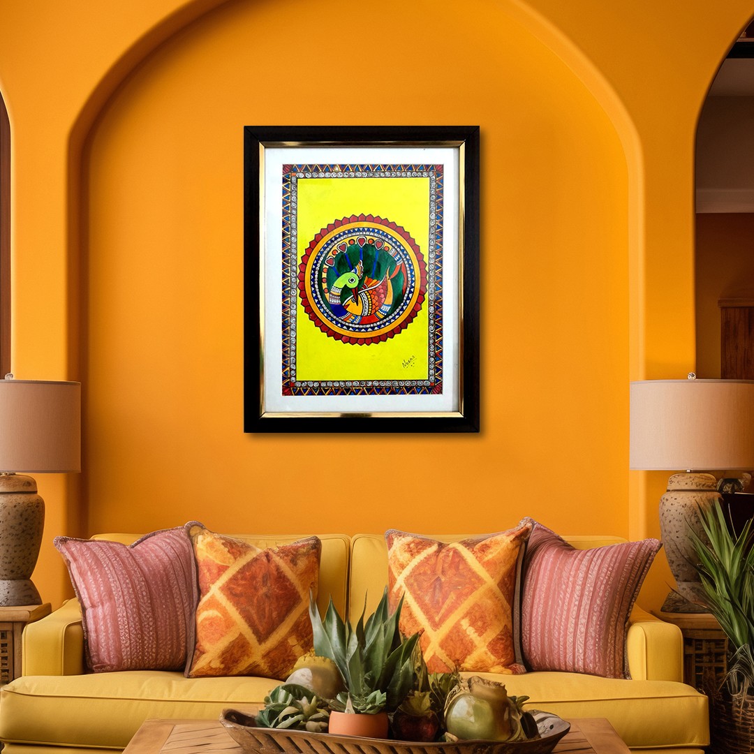 Peacock Warli Painting | Natural Color On Cotton Cloth | By Sanjay Balakrishna Parhad