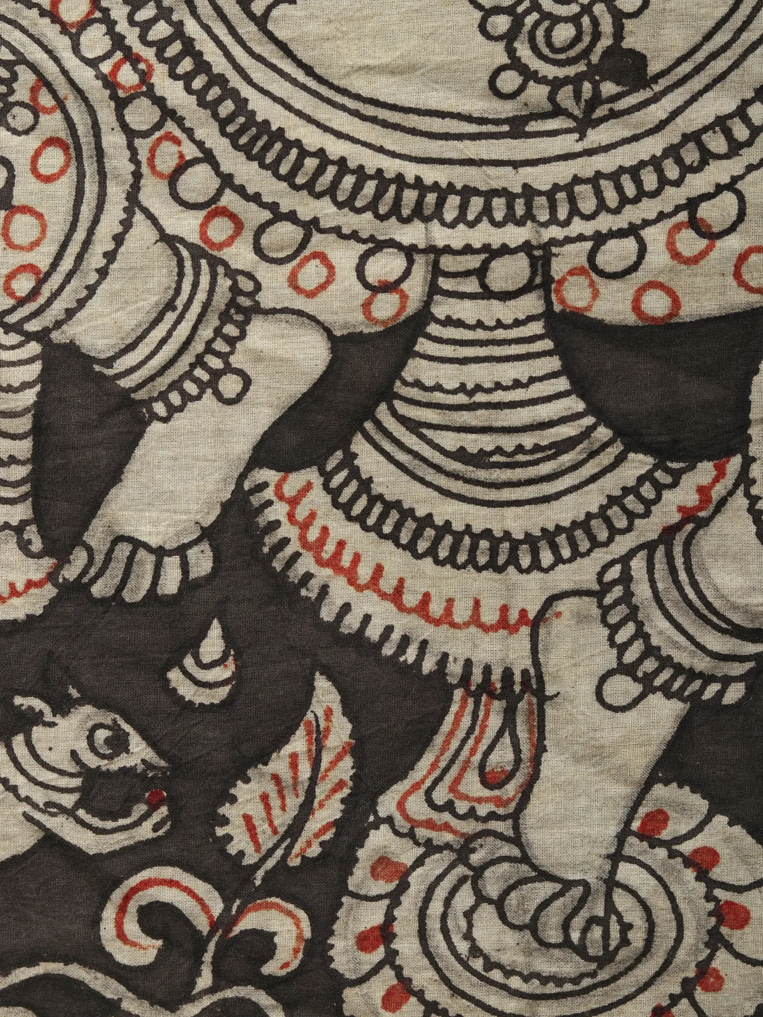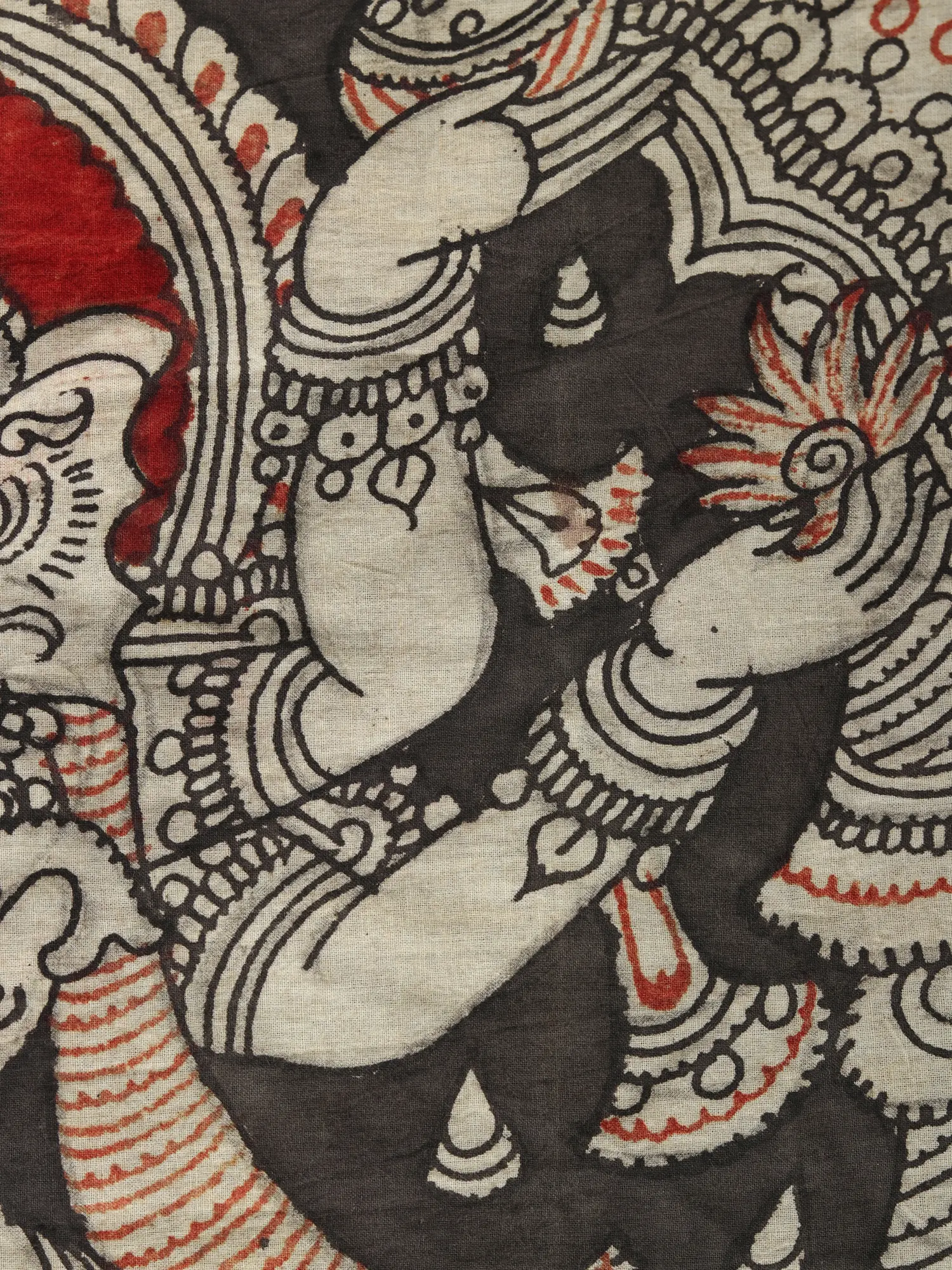 Each stroke on the crisp cotton canvas is a testament to the painstaking artistry of Kalamkari, a traditional Indian art form rooted in meticulous hand-painting and natural dyes. Skilled artisans employ a time-honored technique, painstakingly drawing intricate patterns and figures with sharpened reeds, infusing each creation with soul and character. You'll appreciate the rich black and striking red hues, derived from natural sources, which lend a timeless depth and authenticity to the composition, a true reflection of heritage craftsmanship.