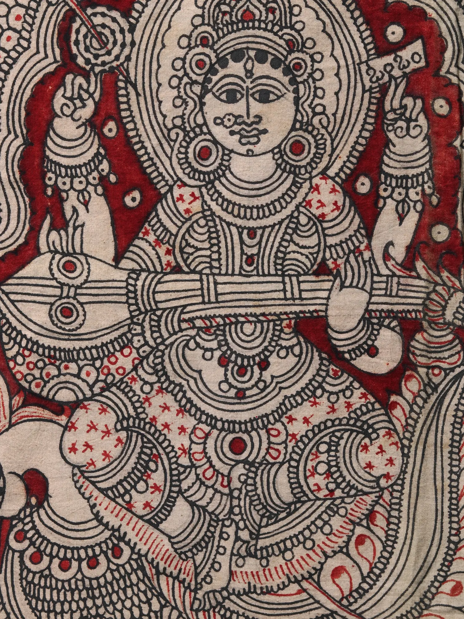 Embrace the essence of knowledge and creativity with this beautiful watercolour. The four-armed Saraswati, adorned in flowing robes, sits gracefully upon a majestic swan. Each of her hands holds a symbolic object, representing various aspects of learning and artistic expression. The soft watercolours capture her serenity and wisdom, reflecting the philosophy of Saraswati Puja, a celebration of intellectual and artistic pursuits.