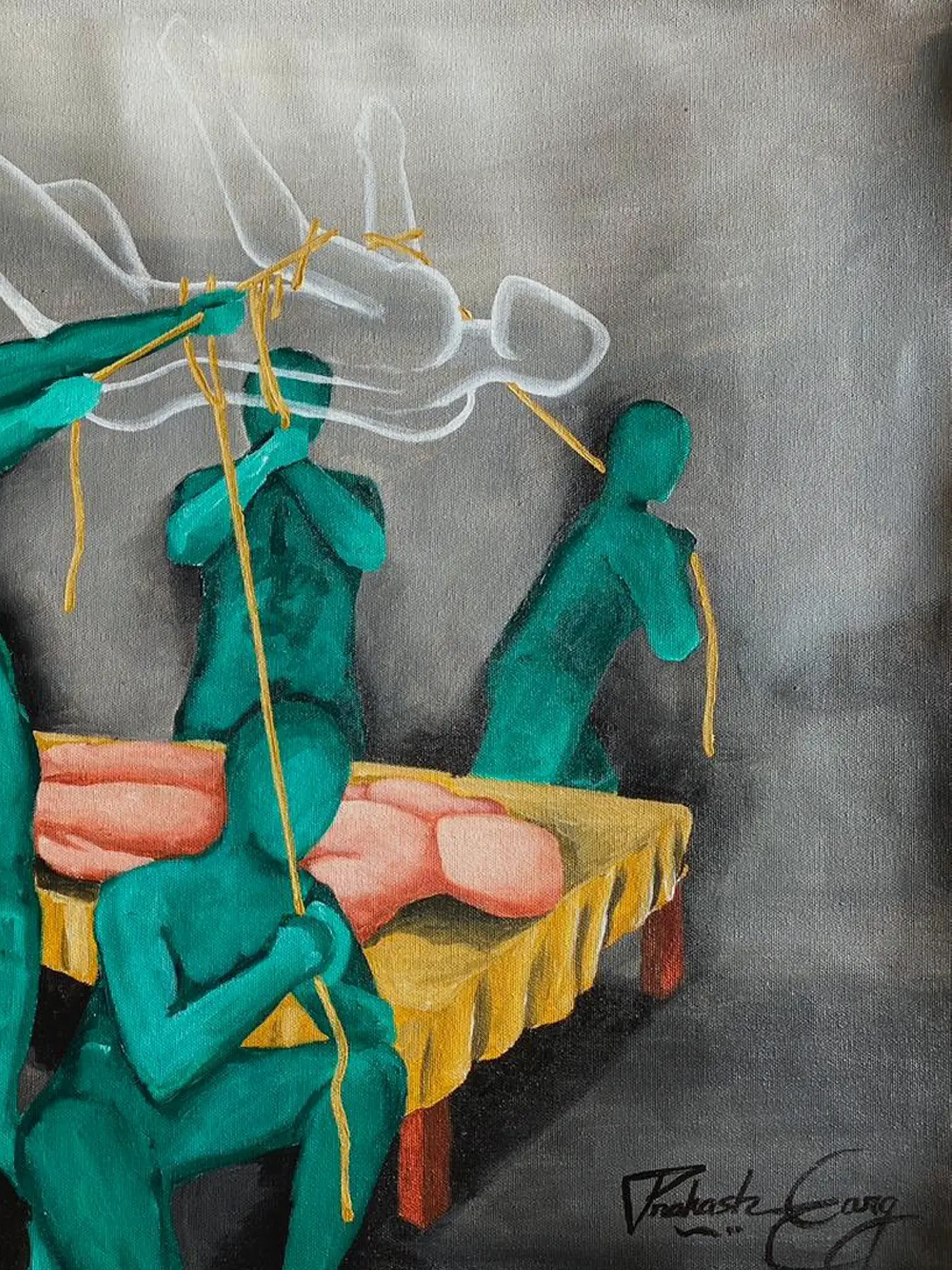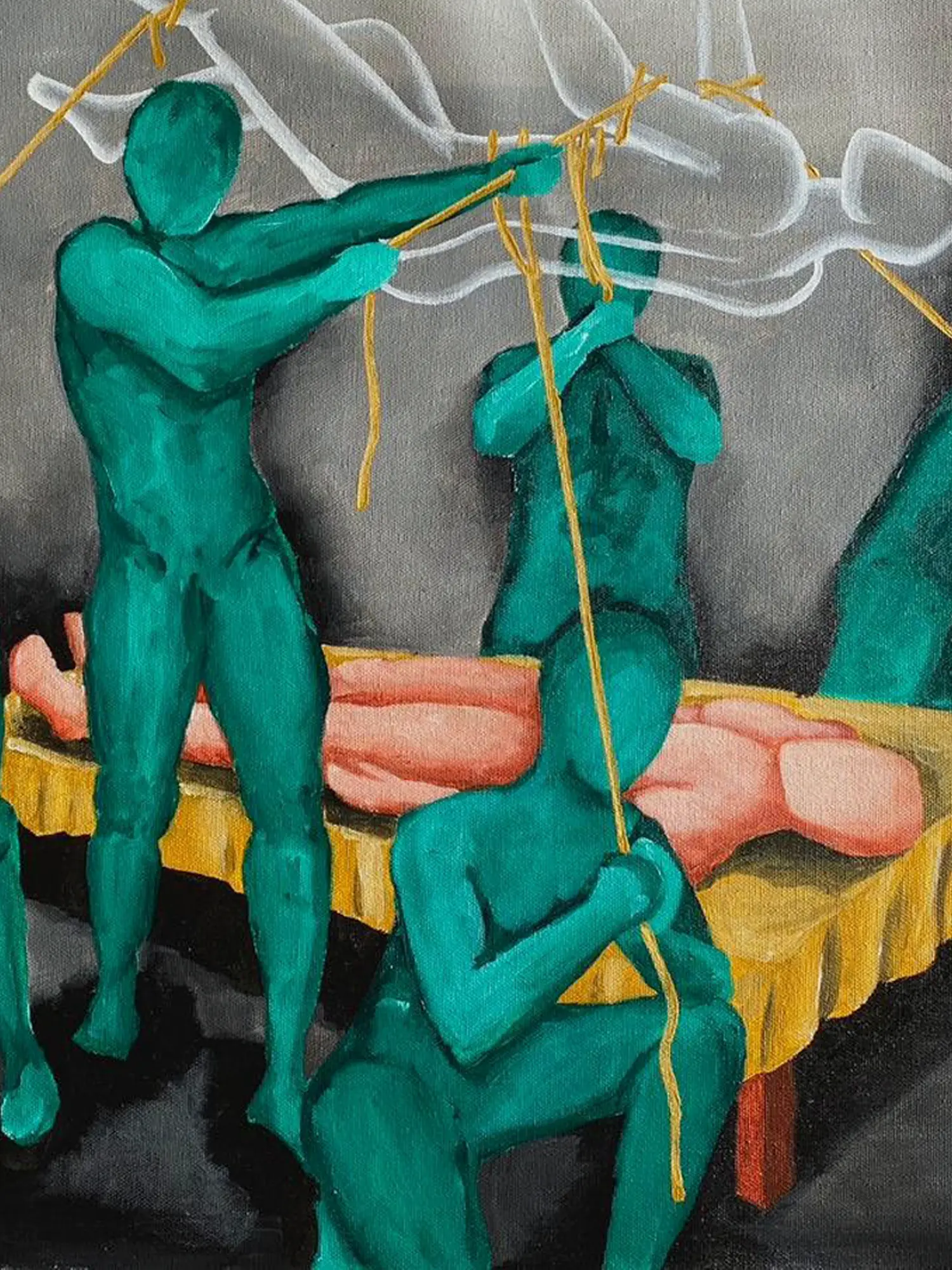 "Friends or Crowd" depicted in acrylic on canvas captures the delicate balance between solitude and companionship. Each stroke tells a story of individuality within a collective space. The canvas becomes a reflection of the dynamic interplay between personal connections and rising above the material reality which is illusional - inviting viewers to ponder the beauty found in both solitude and social circles.