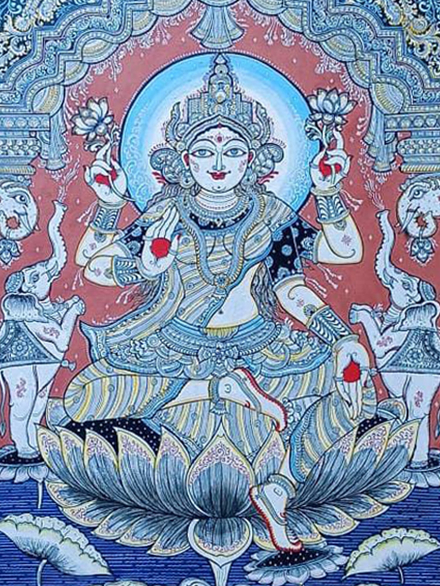 Devi Lakshmi Seated on Lotus | Kalamkari Painting