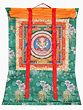 A Thangka is a traditional Tibetan Buddhist painting that usually depicts a Buddhist Deity (Buddha or Bodhisattva), a scene, or a mandala. These paintings are considered important paraphernalia in Buddhist rituals. They are used to teach the life of the Buddha, various lamas, and Bodhisattvas to the monastic students, and are also useful in visualizing the deity while meditating. One of the most important subjects of thangkas is the Bhavacakra (the wheel of life) which depicts the Art of Enlightenment. It is believed that Thangka paintings were developed over the centuries from the murals, of which only a few can be seen in the Ajanta caves in India and the Mogao caves in Gansu Province, Tibet. Thangkas are painted on cotton or silk applique and are usually small in size. The artist of these paintings is highly trained and has a proper understanding of Buddhist philosophy, knowledge, and background to create a realistic and bona fide painting.