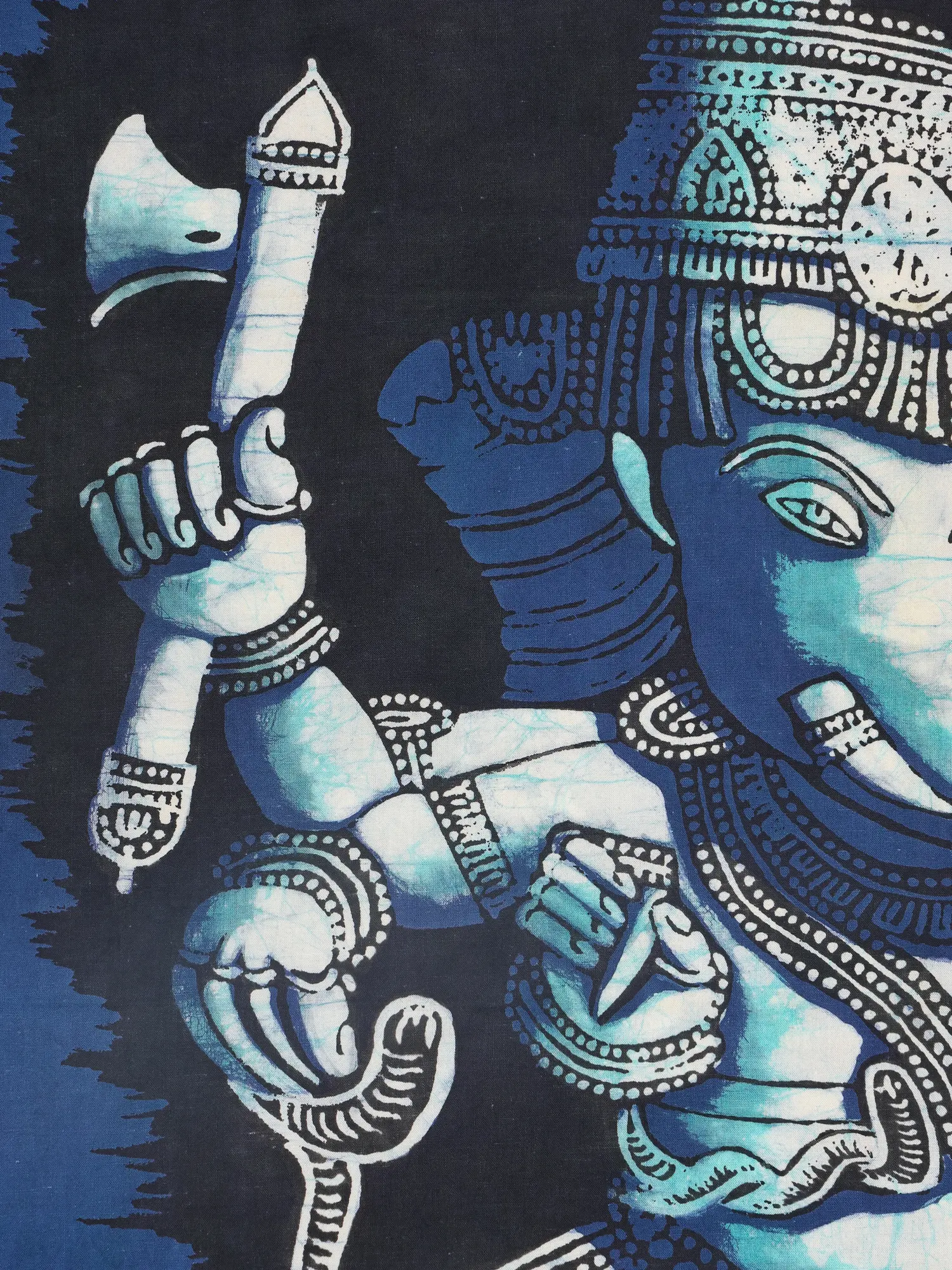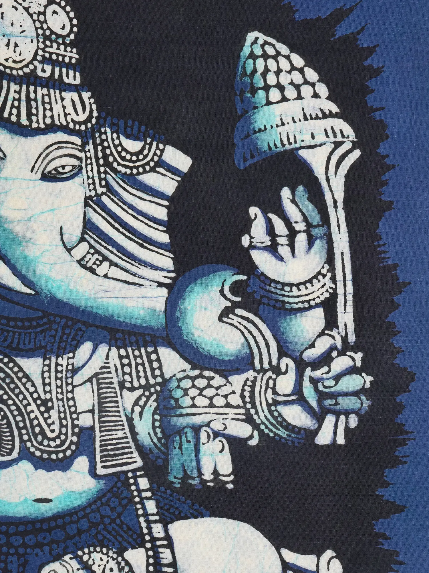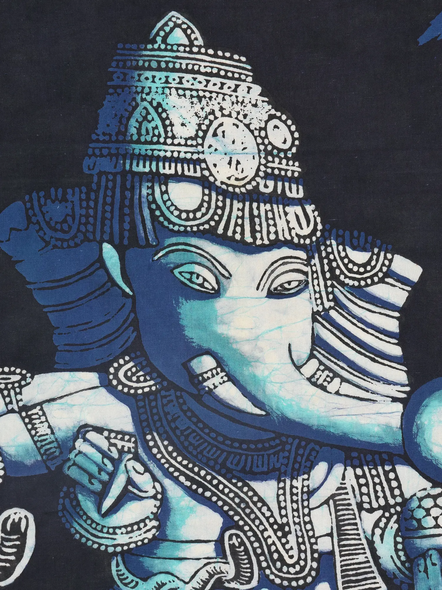 This depiction draws from the rich cultural tapestry of India, where Lord Ganesha is revered as the remover of obstacles and the patron of arts and sciences. His benevolent form, paired with the humble mouse, symbolizes how even the smallest can overcome great challenges under divine grace. The batik technique itself has deep roots, offering a connection to artisanal traditions passed down through generations.