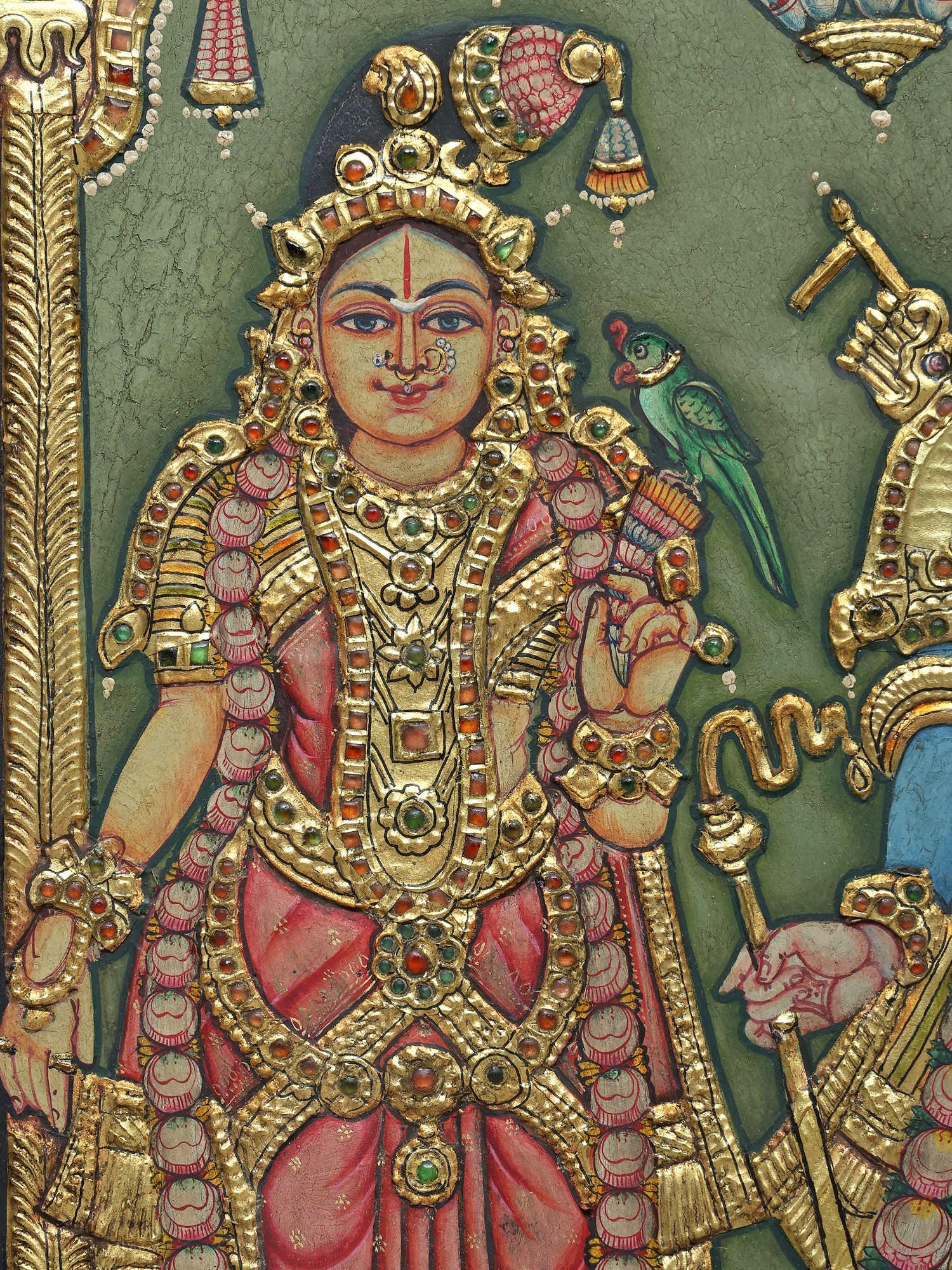 The divine couple is adorned with intricate ornaments and attire, radiating grace and power.