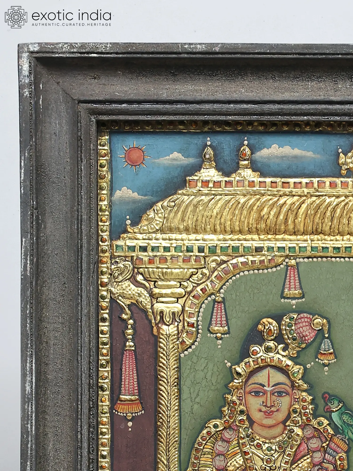 Goddess Andal Tanjore Painting | Traditional Colors With 24K Gold | Teakwood Frame