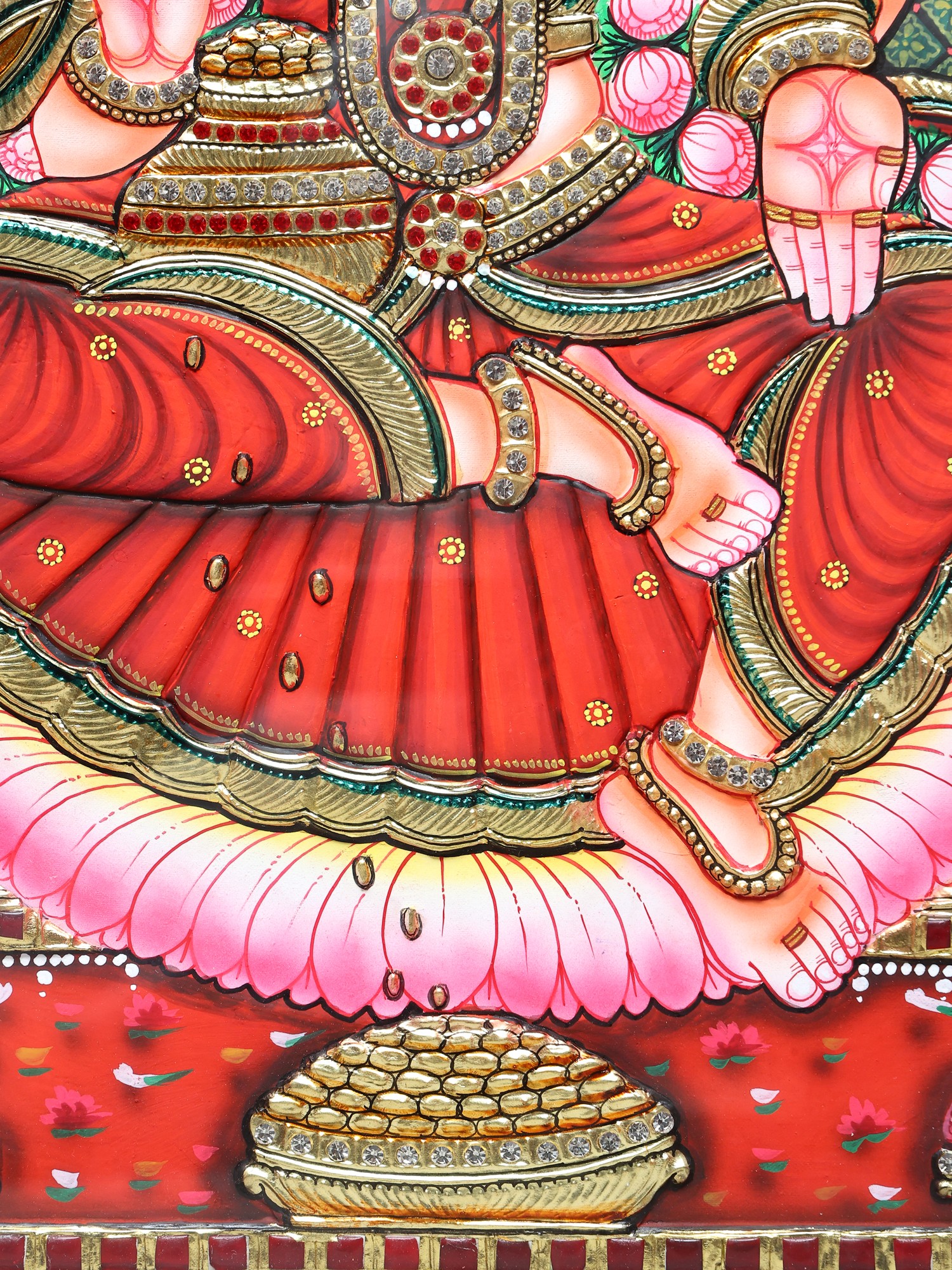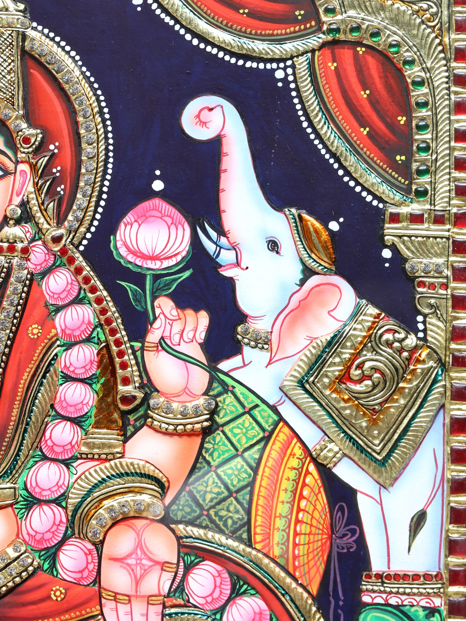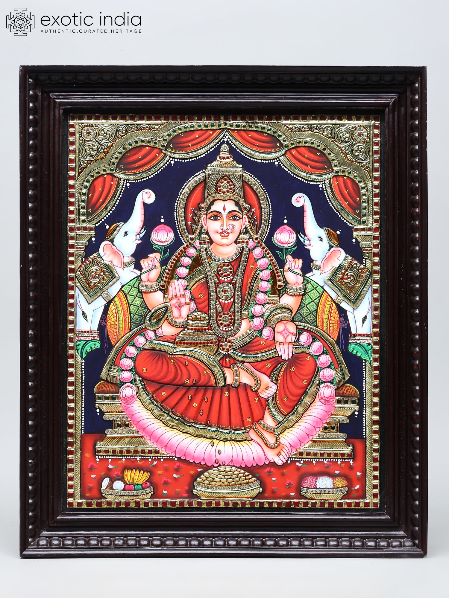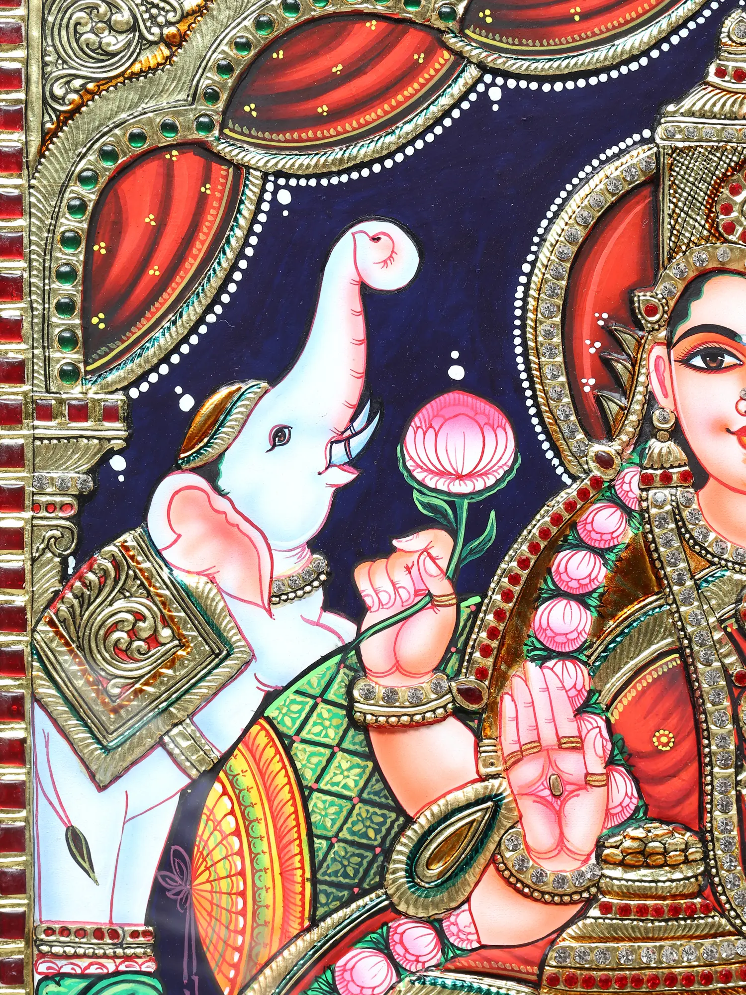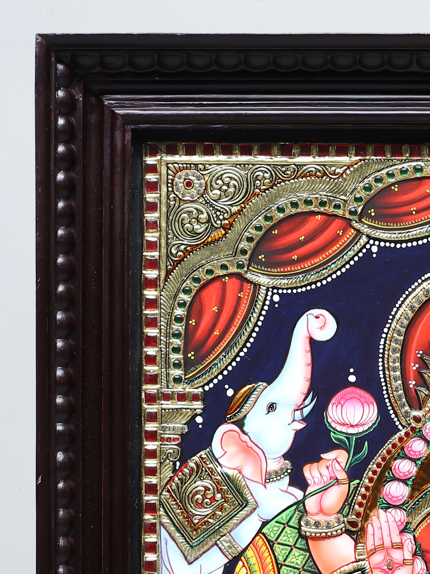 Goddess Gajalakshmi Tanjore Painting | Traditional Colors With 24K Gold | Teakwood Frame