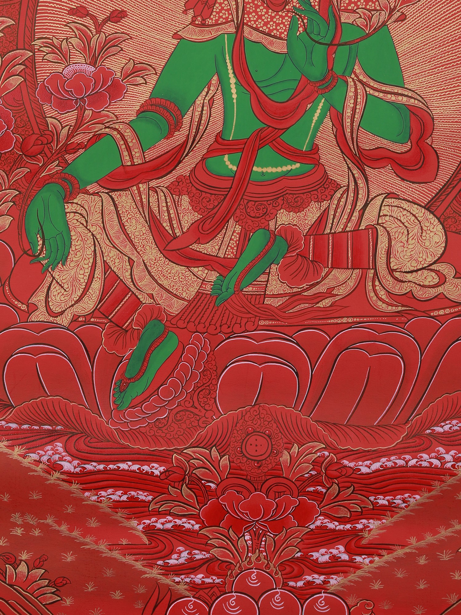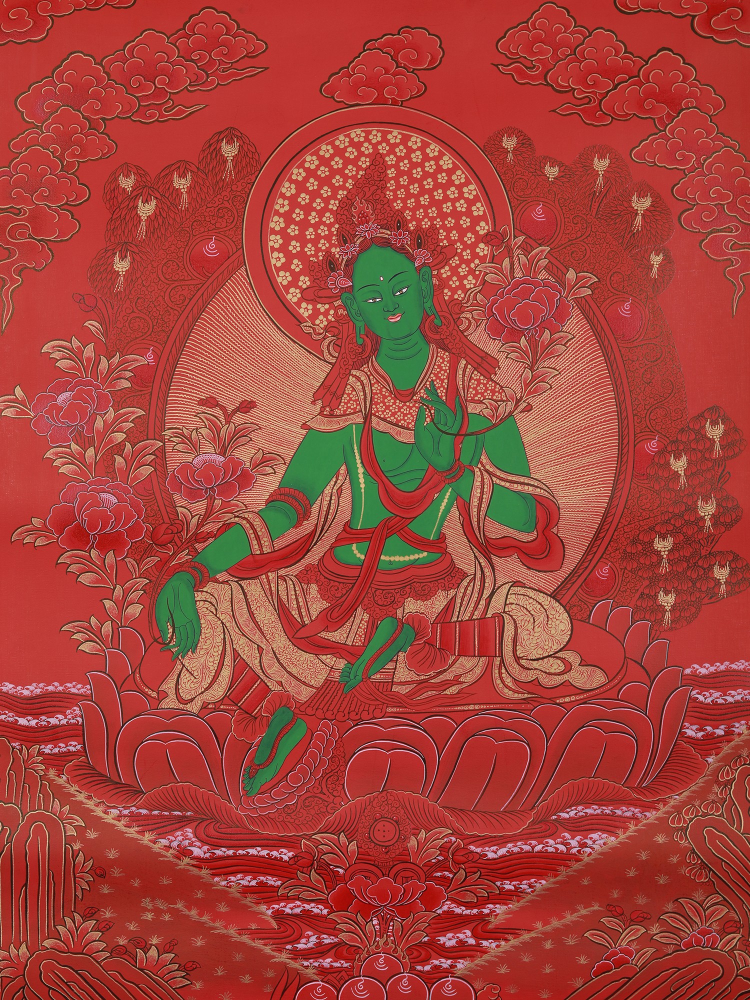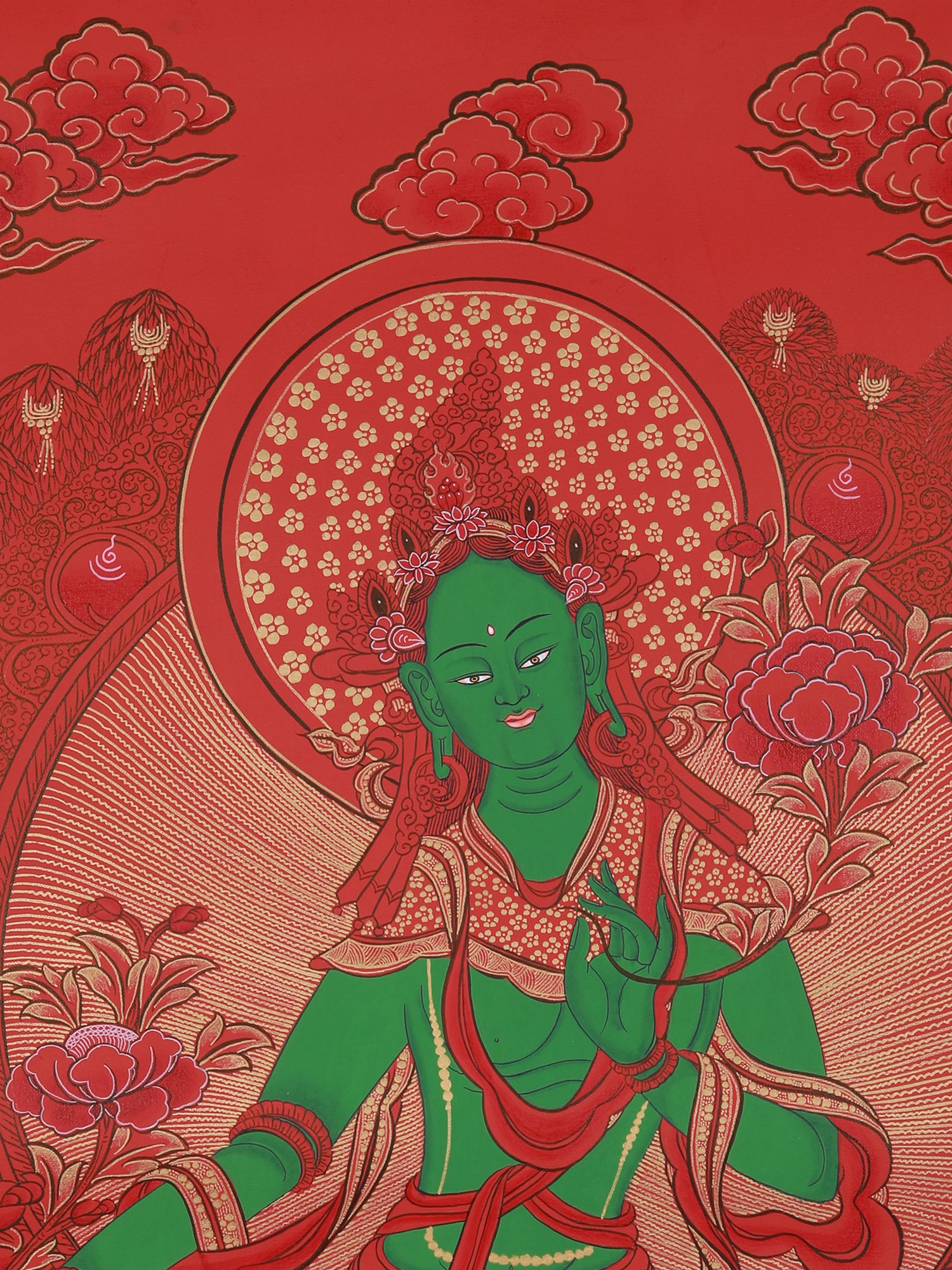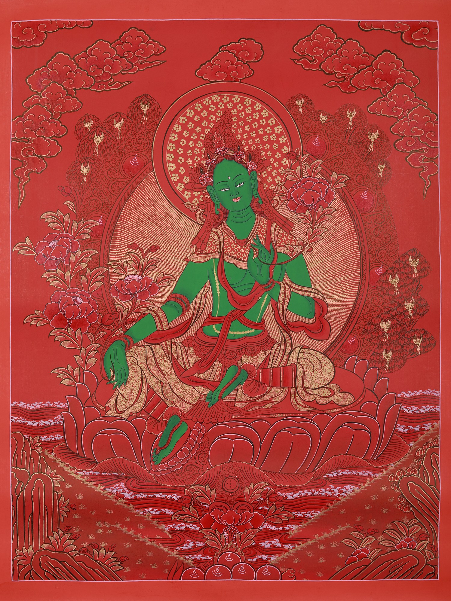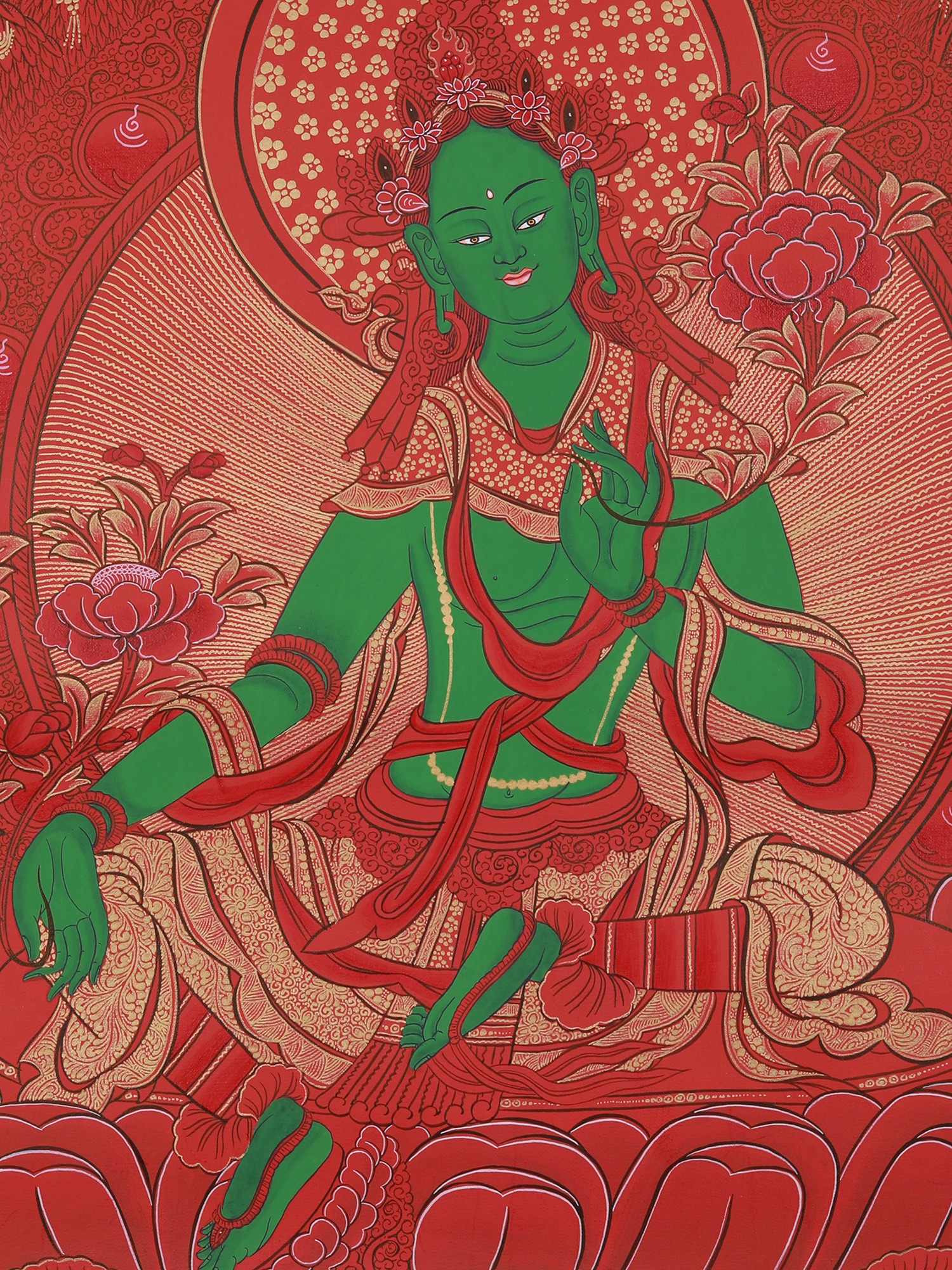 Newari Green Tara Mandala (Brocadeless Thangka)