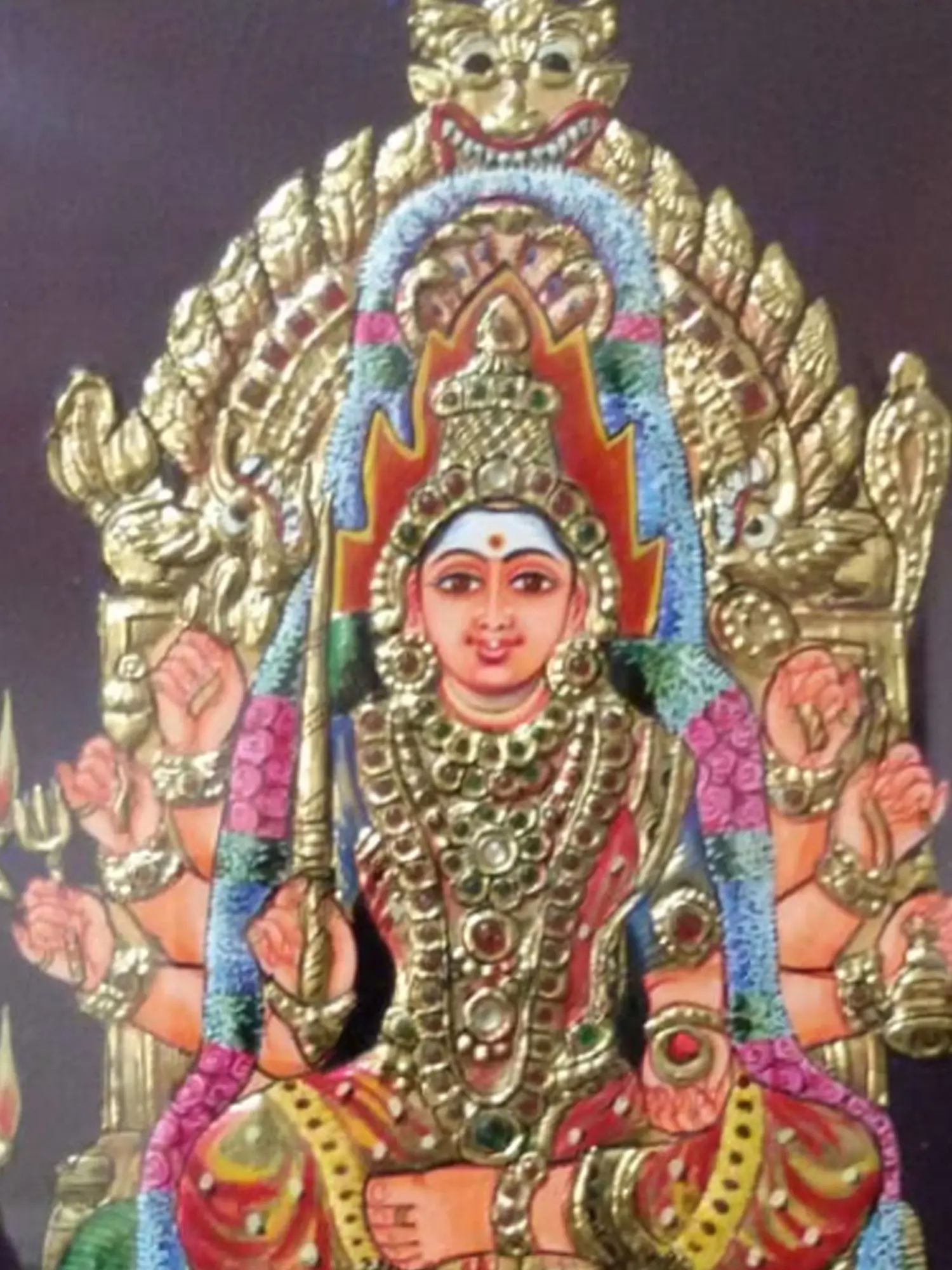 With the Tripunda on her forehead and animated gaze, goddess Mariamman gazes at the devotee with benevolent eyes, assuring the heart of her omnipresence.