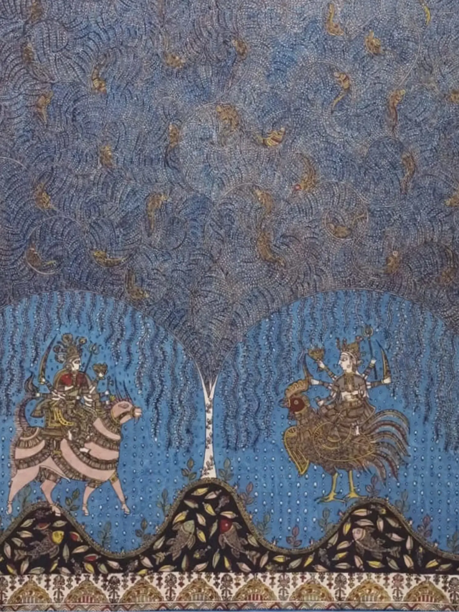 Goddess Vihat With Avatar | Natural Colors On Cloth | By Sohan Chitara