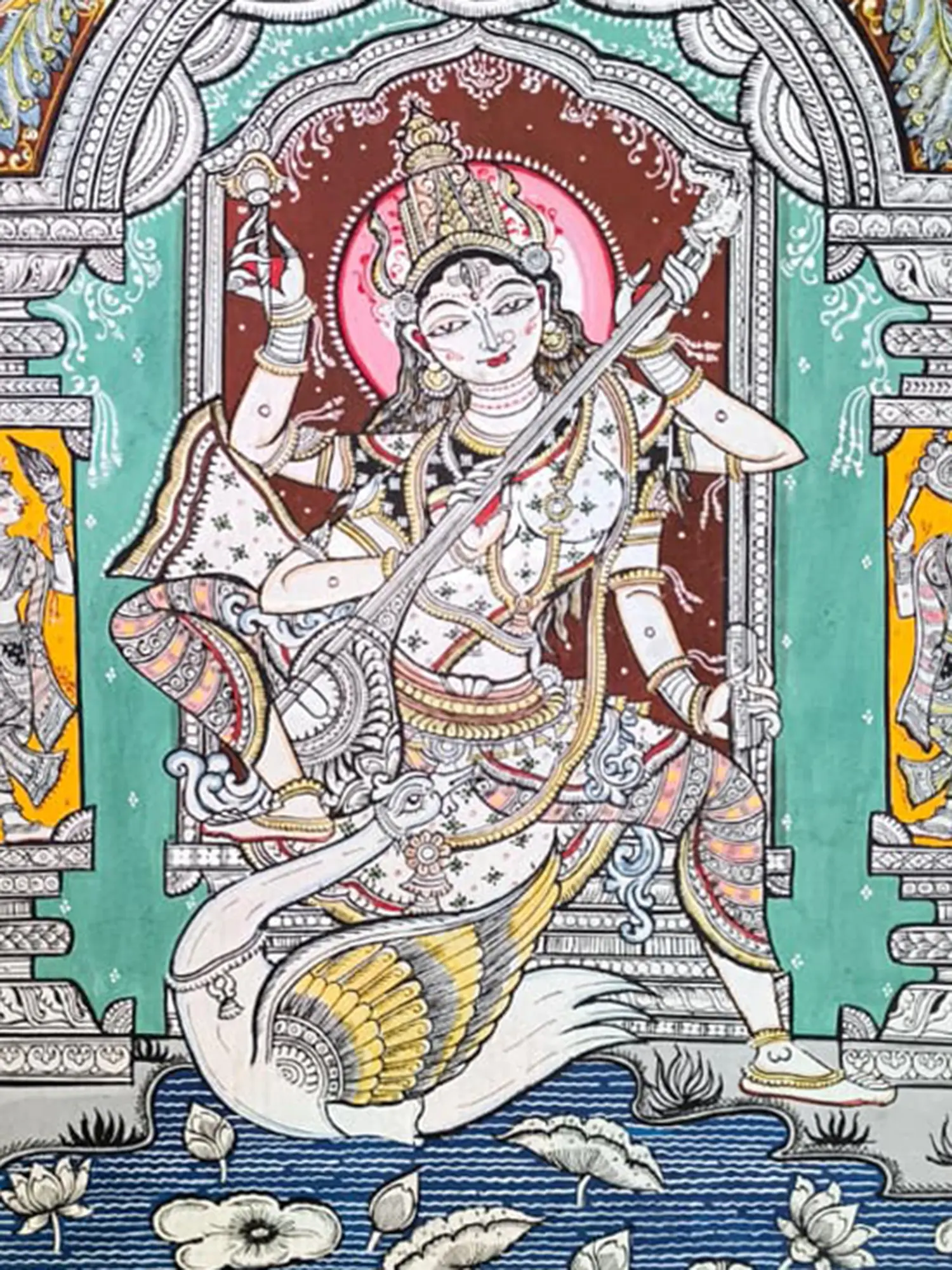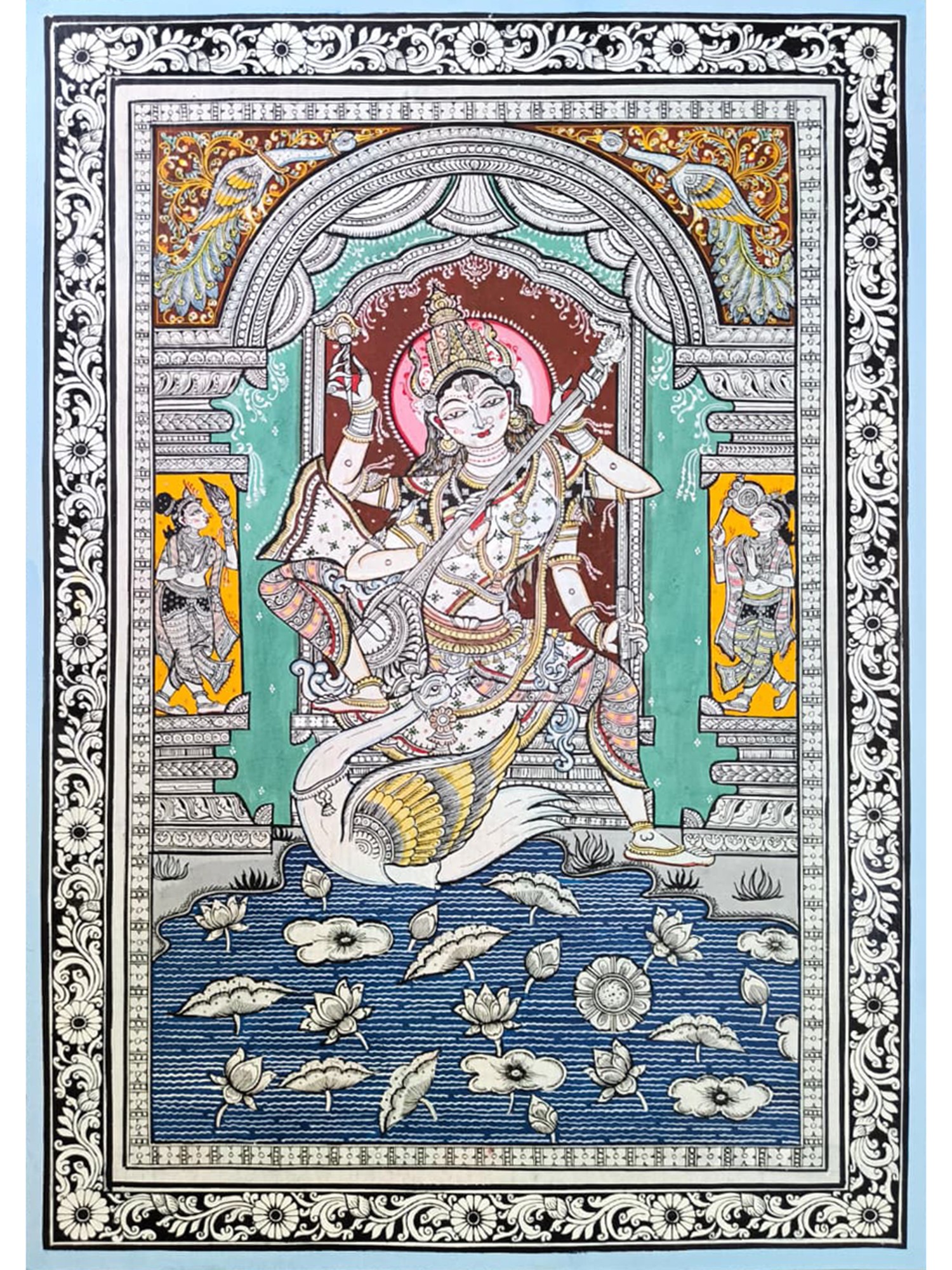Goddess Saraswati | Kalamkari Painting on Cotton