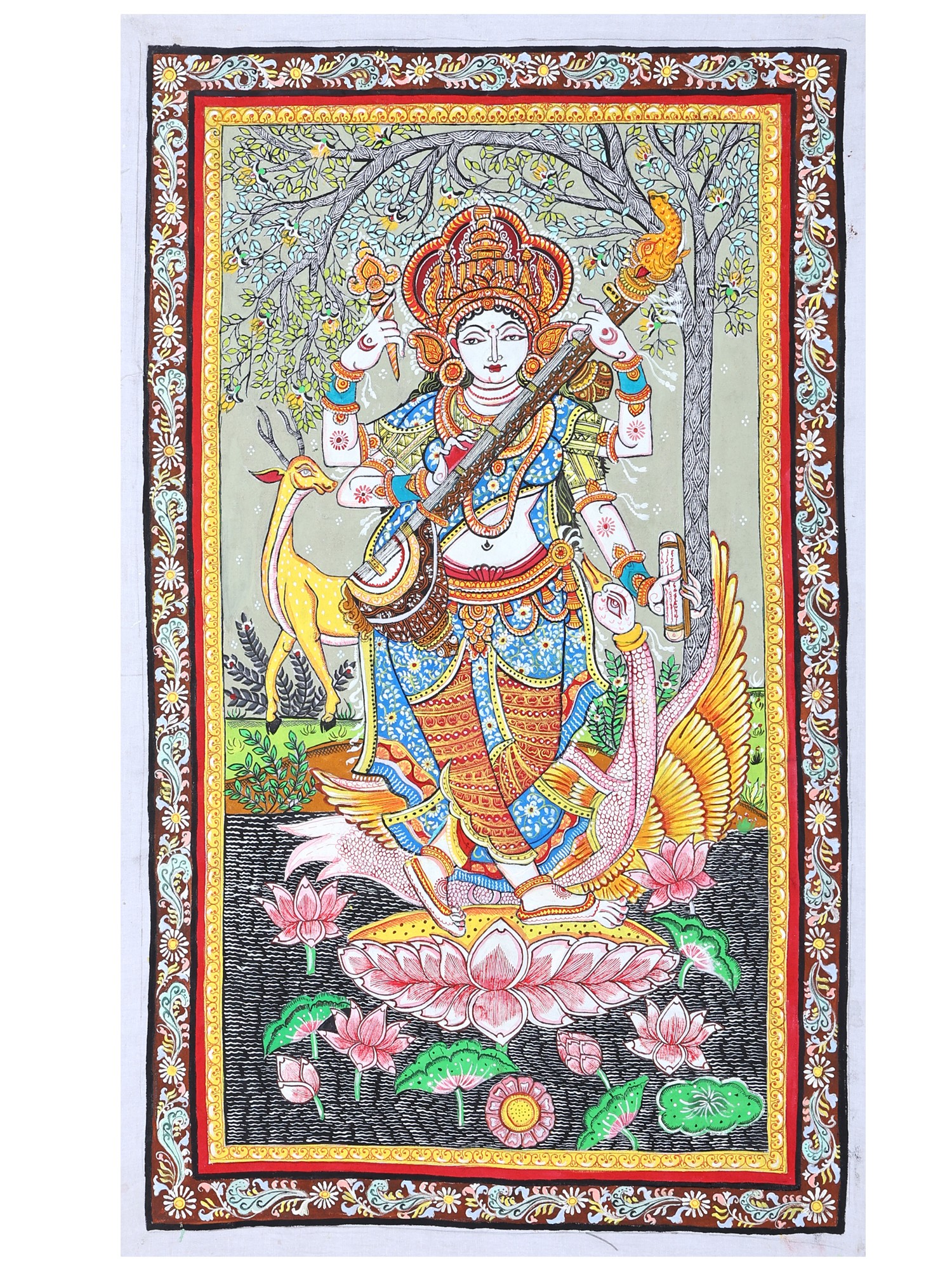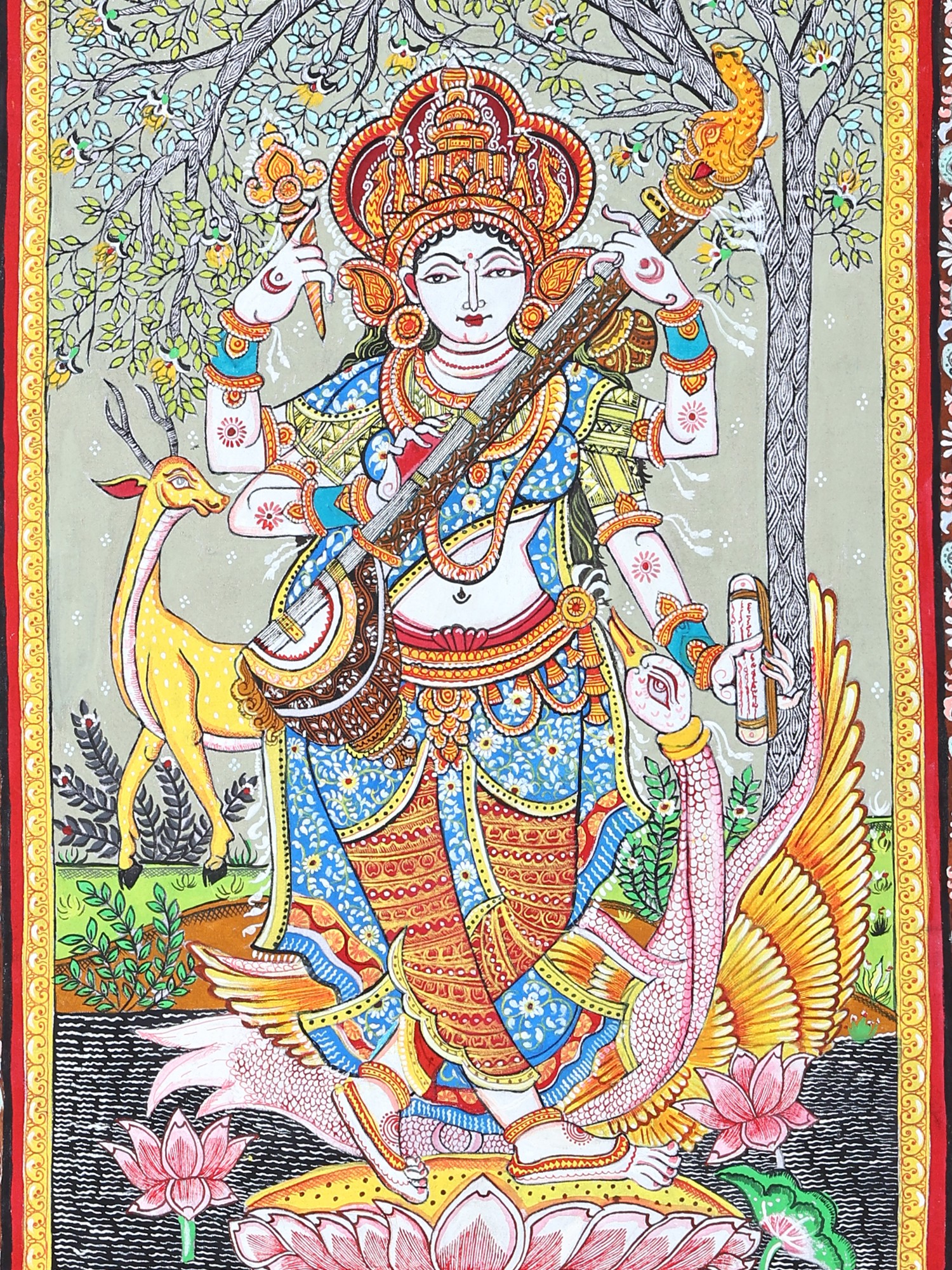 Introducing the Divine Saraswati: A Pattachitra Masterpiece