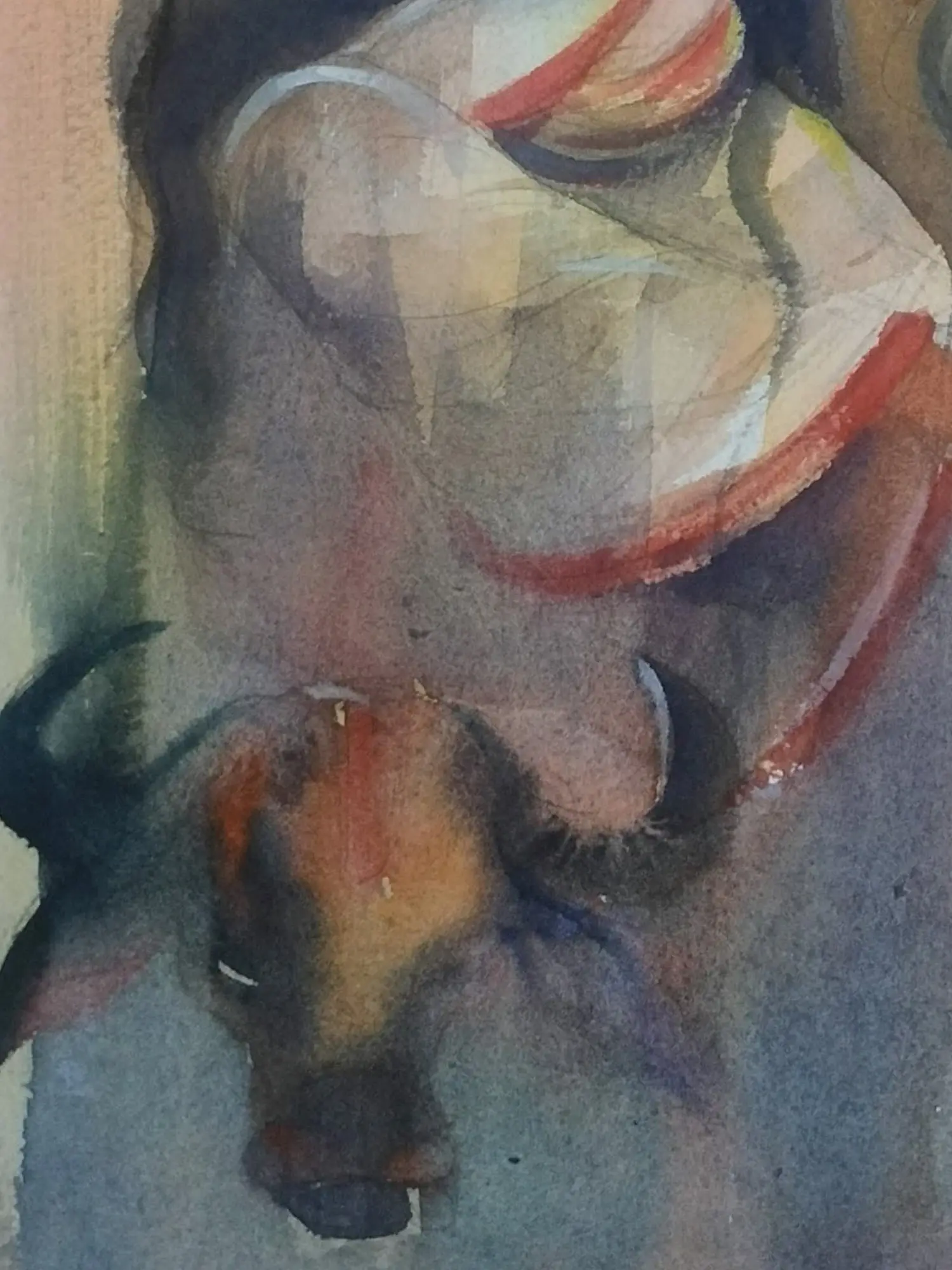 The artist's skillful use of Chitrapot paper lends a unique texture and depth to the artwork. Chitrapot, a traditional Indian hand-made paper, is renowned for its rich, warm tones and slightly rough surface, making it an ideal medium for watercolor paintings. The paper's inherent character enhances the vibrancy of the colors and adds a sense of authenticity, reflecting the cultural heritage of the artwork. The painting measures 16 inches in height and 12 inches in width, making it a perfect statement piece for your home or office. Its manageable size allows it to be easily displayed and appreciated, while the captivating image ensures that it will draw the eye and inspire contemplation. The skillful use of watercolors creates a dreamlike quality, while retaining the essential lines and form that make the image instantly recognizable.