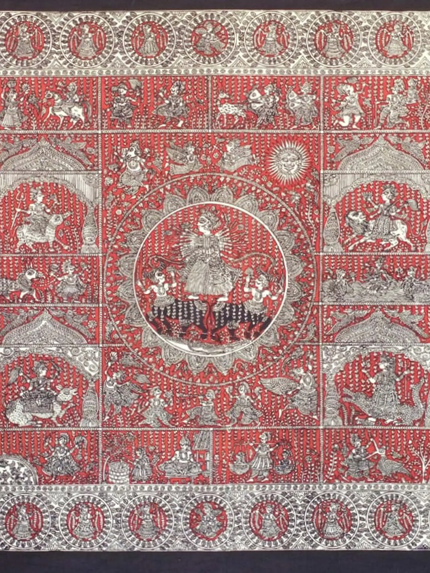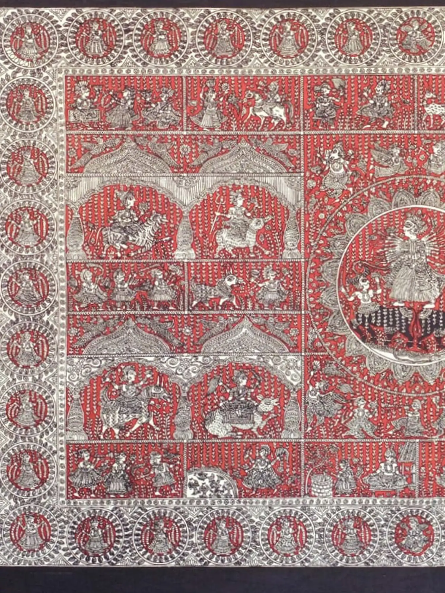 This artwork draws inspiration from the rich cultural heritage of India, specifically the revered traditions surrounding Hindu goddesses. The depiction of Vihat and her avatars is steeped in symbolism, offering a glimpse into a spiritual lineage passed down through generations. You'll appreciate the way the artist has captured the essence of these divine forms, reflecting a deep understanding of their significance.