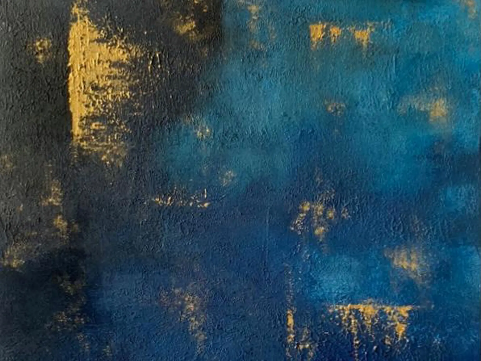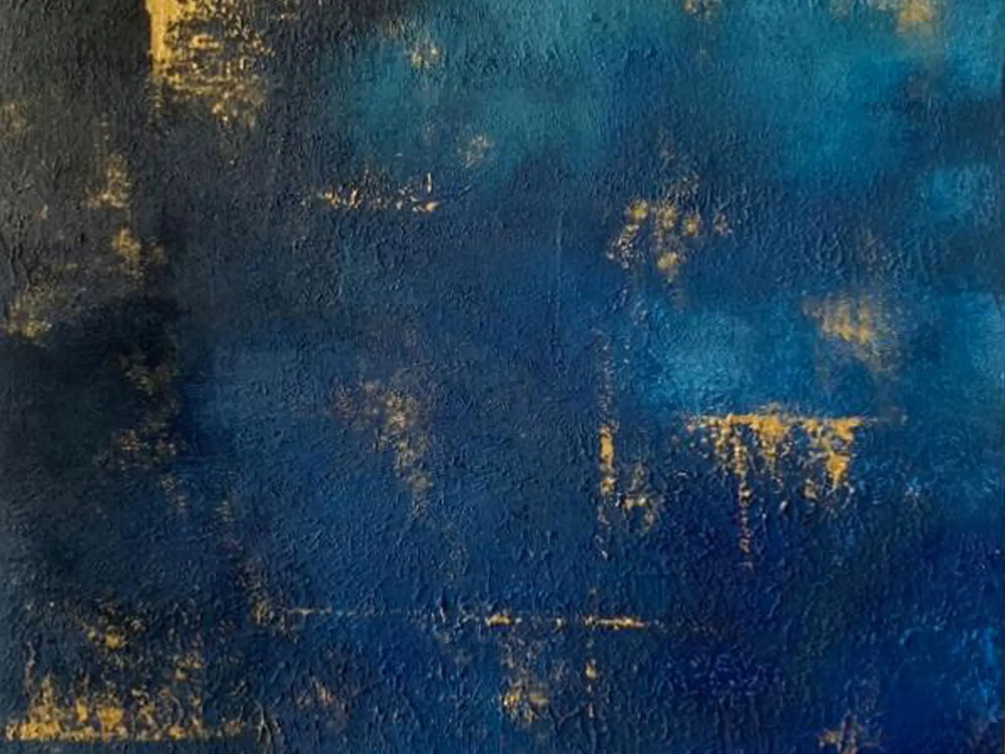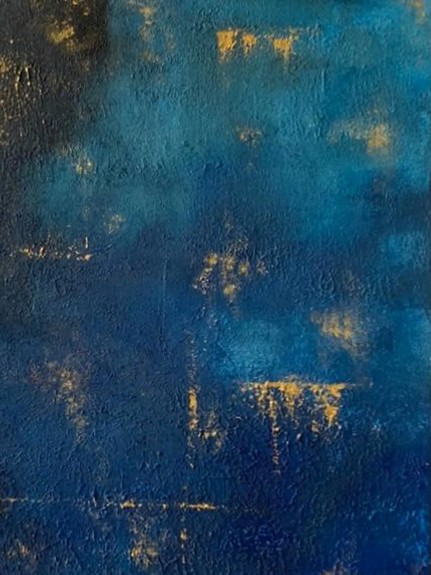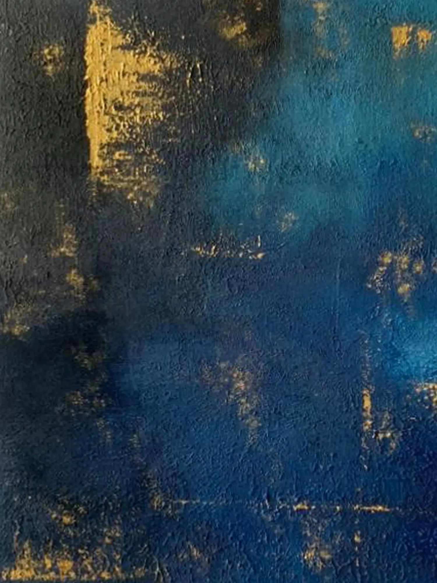 Indulge in opulent elegance with "Gold Textured with Blue Base," a striking mixed media composition on box canvas art. Bathed in shimmering gold against a serene blue backdrop, this artwork exudes regal sophistication and timeless allure. Reflecting the philosophy of balance and harmony, the juxtaposition of textures and hues invites contemplation, evoking a sense of serenity and balance in the observer's soul.