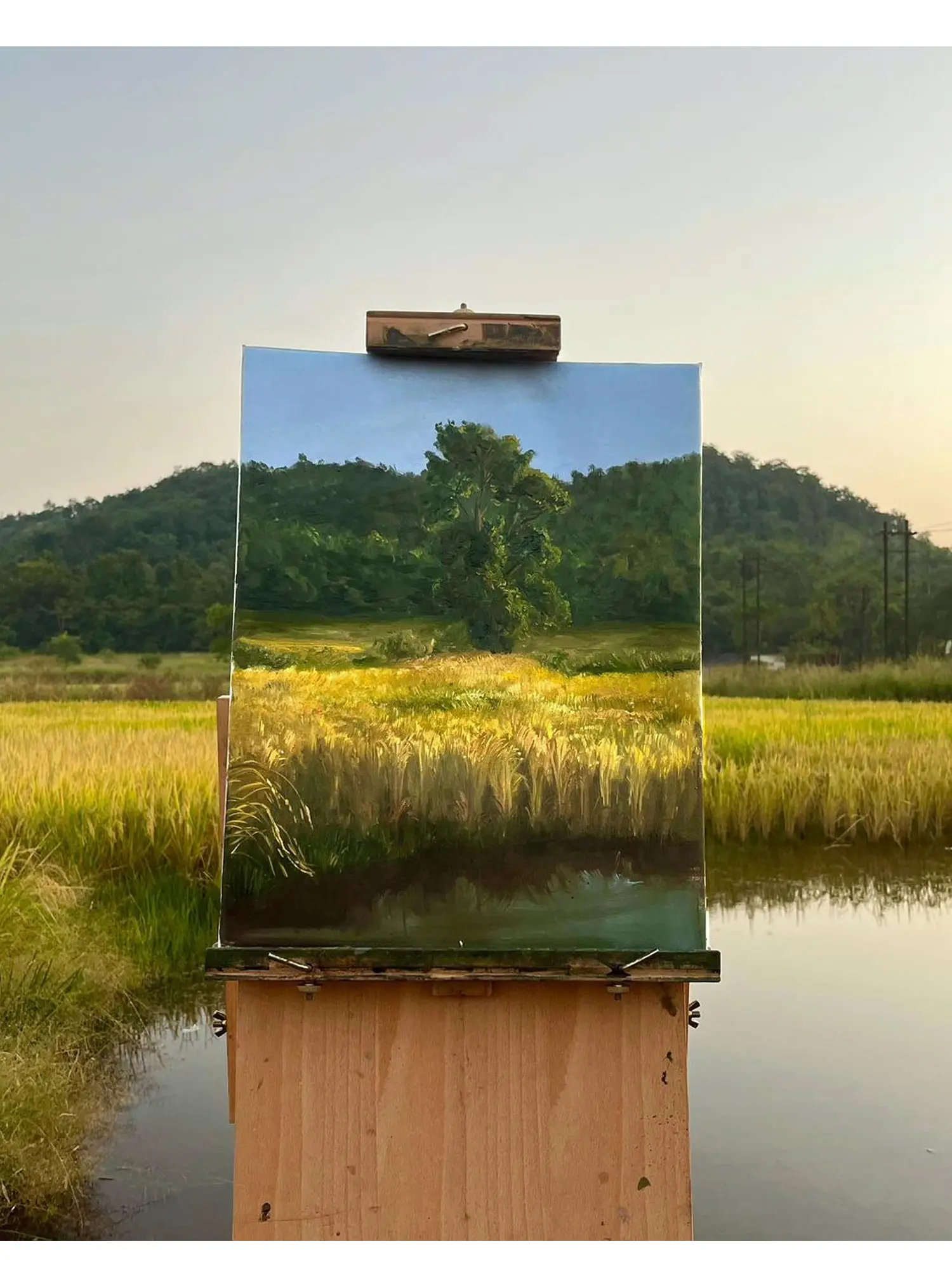 Masterfully rendered on canvas using rich oil paints, this creation is a testament to Somnath Harne's profound connection with the natural world. Each brushstroke is deliberate, building layers of texture and depth that mimic the subtle shifts of light and shadow. You will appreciate the meticulous attention to detail, from the individual stalks of wheat swaying gently in the breeze to the lush, dense foliage framing the scene.