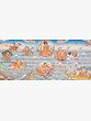 The upper center medallion depicts the Buddha with his disciples. Outside the medallion are the Eighteen Arhats traveling miraculously over the sea to China. According to a tradition, they rode on real and mythical animals like boats. The ocean, which had high waves, became very calm, and the animals were therefore walking on the water. The Arhats do not have definitive attributes and that makes their identification a matter of conjecture. However these Arhats can be individually recognized by standard attributes, such as an incense burner, a flywhisk, a miniature stupa, a book, a glowing gem or a string of jewels etc. Following Arhats are on their way to China: