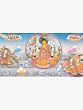 18. Hashang (Hva shang): the word Hashang means a “monk” or “scholar” in Chinese. At the beginning of the Tang dynasty, he was the teacher of the Tai Tsung emperor and his eight sons. He was thought to be the Chinese messenger who brought a letter of invitation from Chinese emperor to the Sixteen Arhats asking them to visit the capital of China and assuring their safety during trip. Hashang looks like the figure called the Laughing Buddha, usually shown with a fat belly, a smiling face, and surrounded by children. Hashang is depicted here on bottom right corner on a ship along with king’s representatives, and guiding the Arhats. The bottom right corner depicts stupas and monasteries.