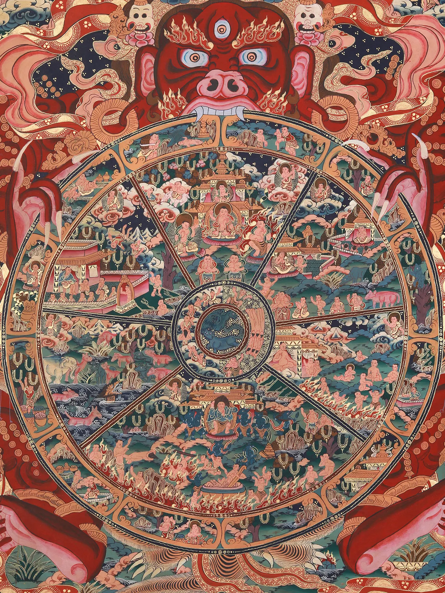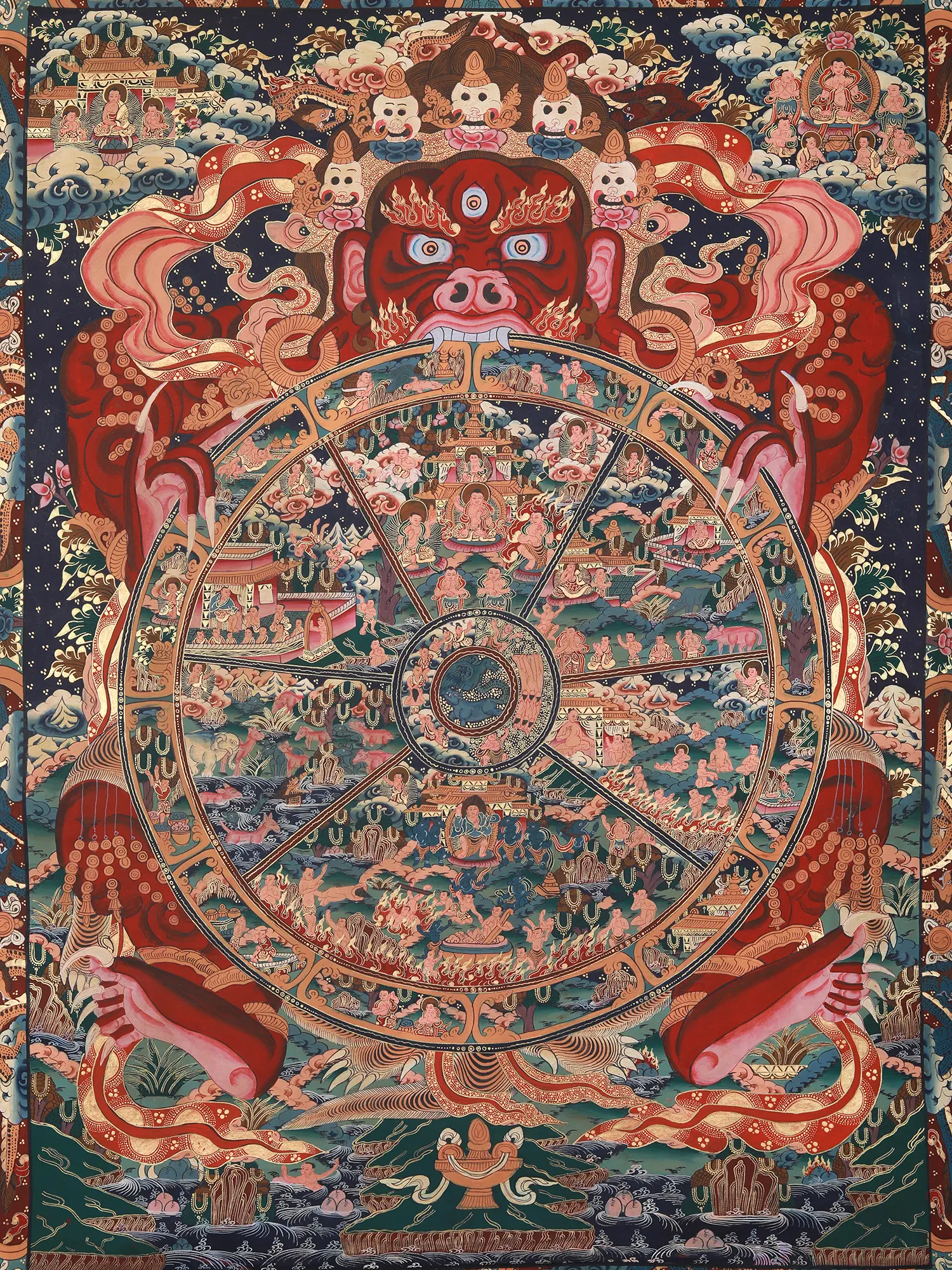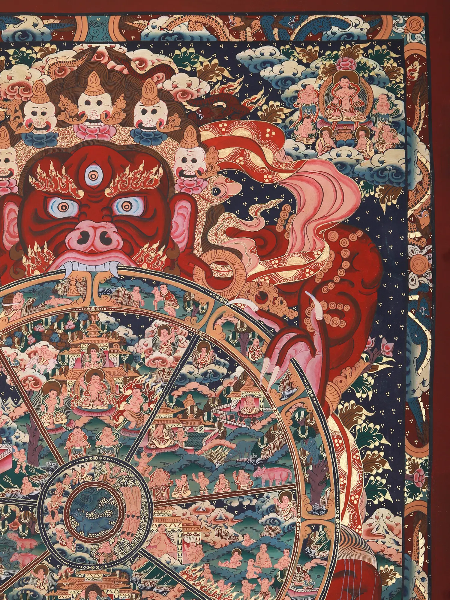 Medium Wheel of Life Thangka (Brocadeless Thangka)
