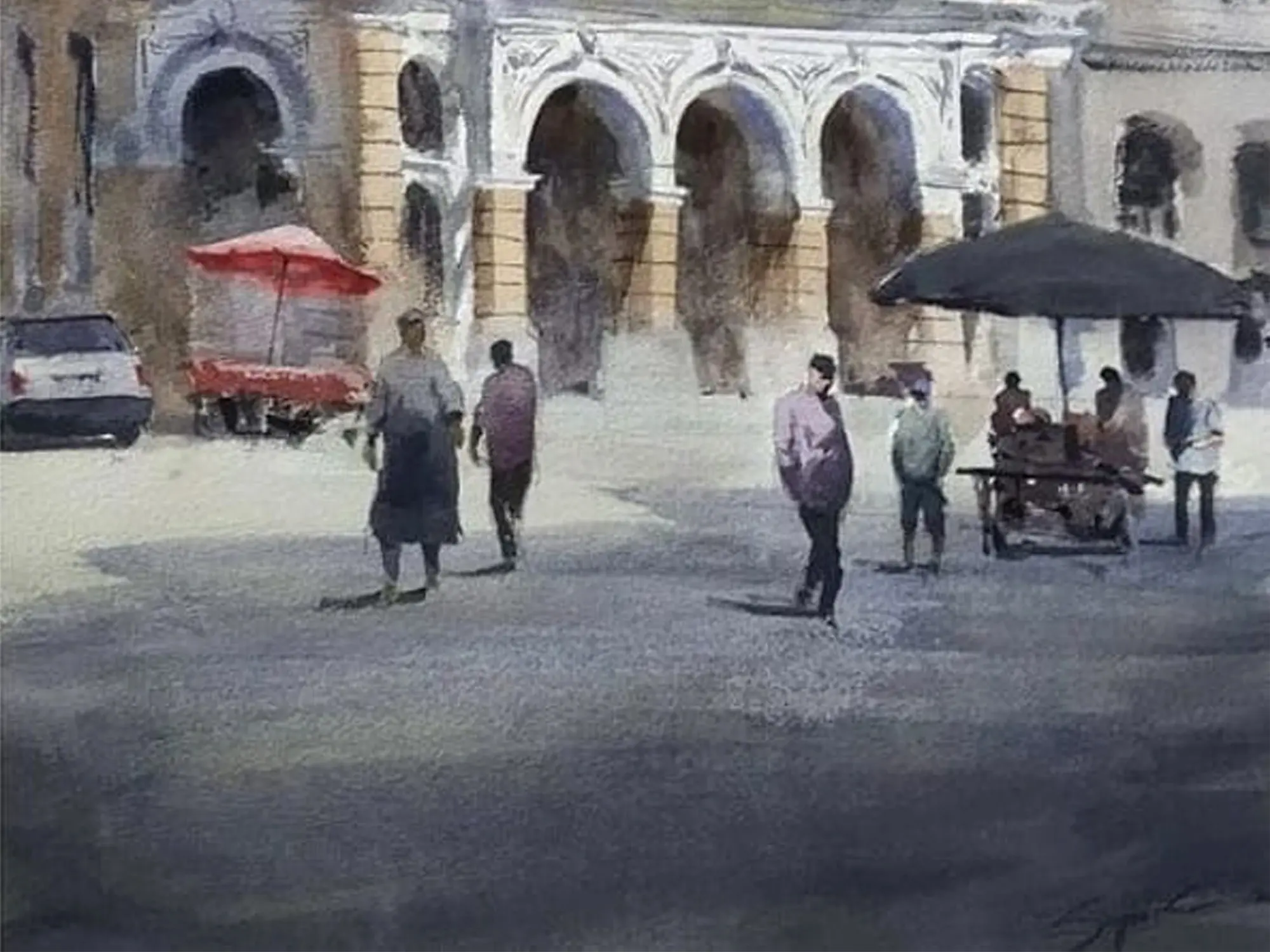 Roadside View Of Kolkata | Watercolor On Paper | By Sagnik Sen