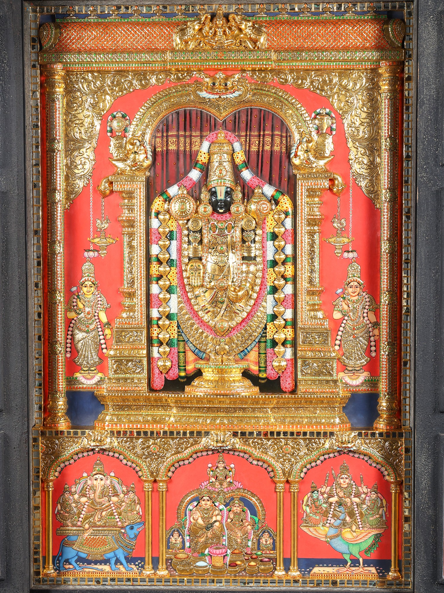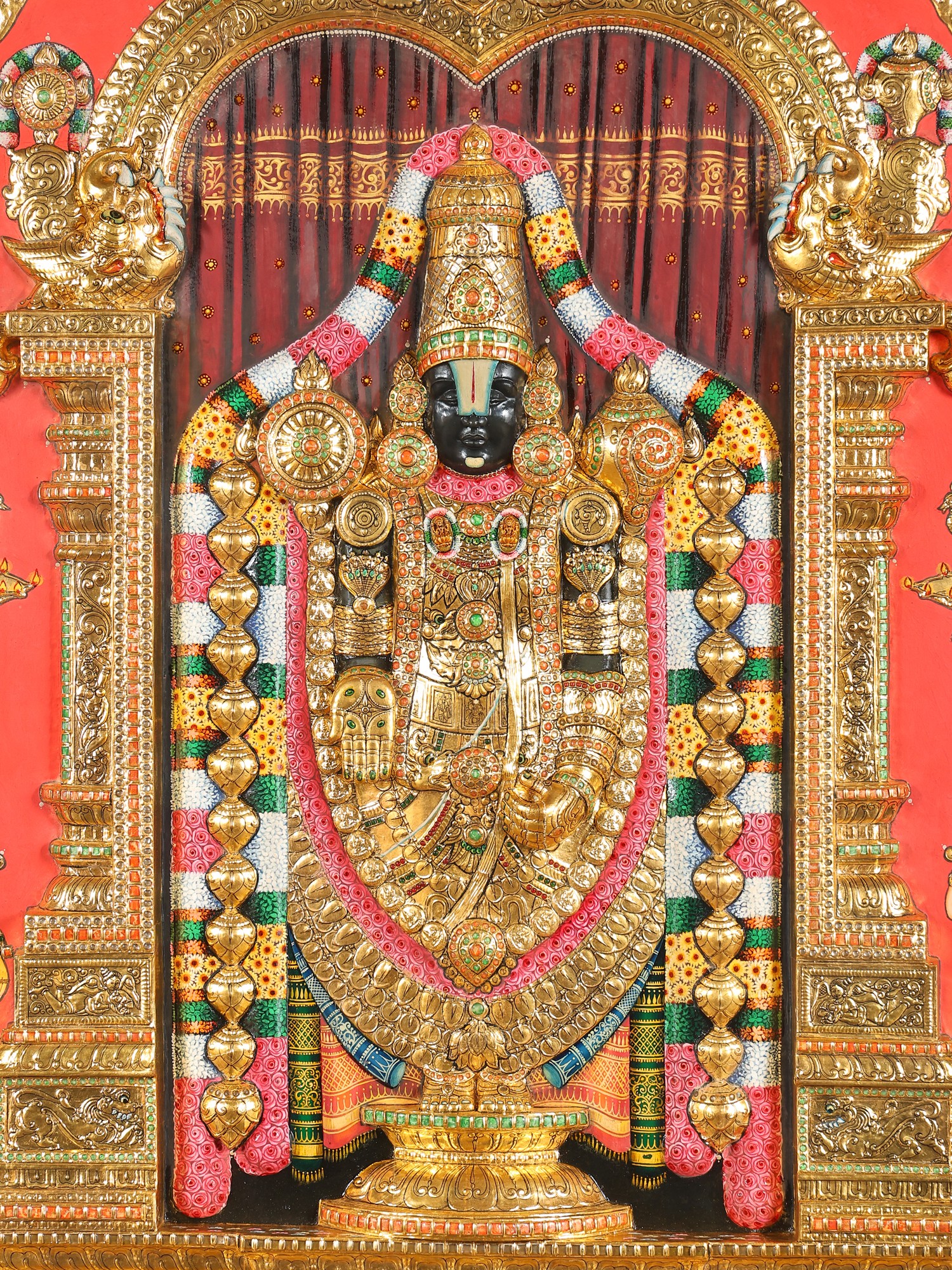 Lord Tirupati Balaji (Venkateshvara) | Framed Tanjore Painting