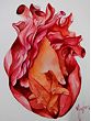 The vibrant red hue pulsates with passion, embodying the intensity of longing, while the hands, painted in a lighter shade, symbolize the delicate dance of hope and vulnerability. Through the contrasting colors and evocative imagery, Chakraborty orchestrates a visual sonnet of the heart's ache, inviting viewers to resonate with the universal chorus of human longing and the quest for connection.