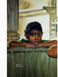 The two subjects, who look at the audience with leisurely expressions in this oil on canvas by Dhiraj Khandelwal, are a father and his daughter. With attention to the details of facial expressions and features, Khandelwal leaves no room for doubt over how the two of them are related to one another. Allowing us to weave a context for this oil painting, he has focused on presenting an affectionate and idyllic picture of the unparalleled bond between a father and daughter.