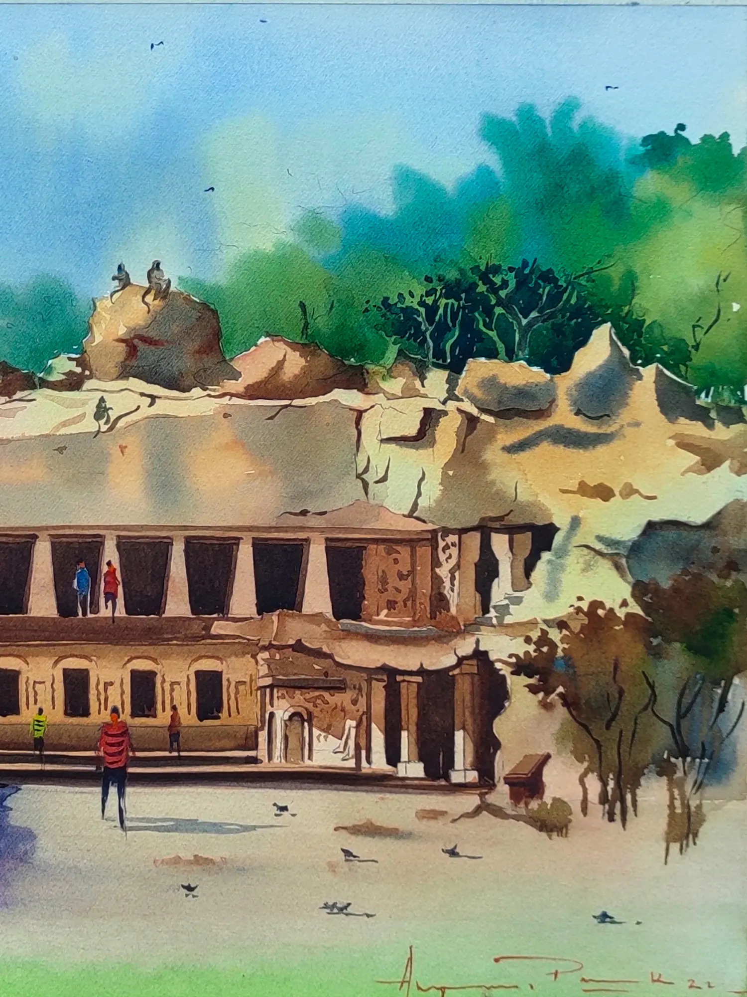 Old Temple Painting | Water Color On Paper | By Chakradhar Mahato