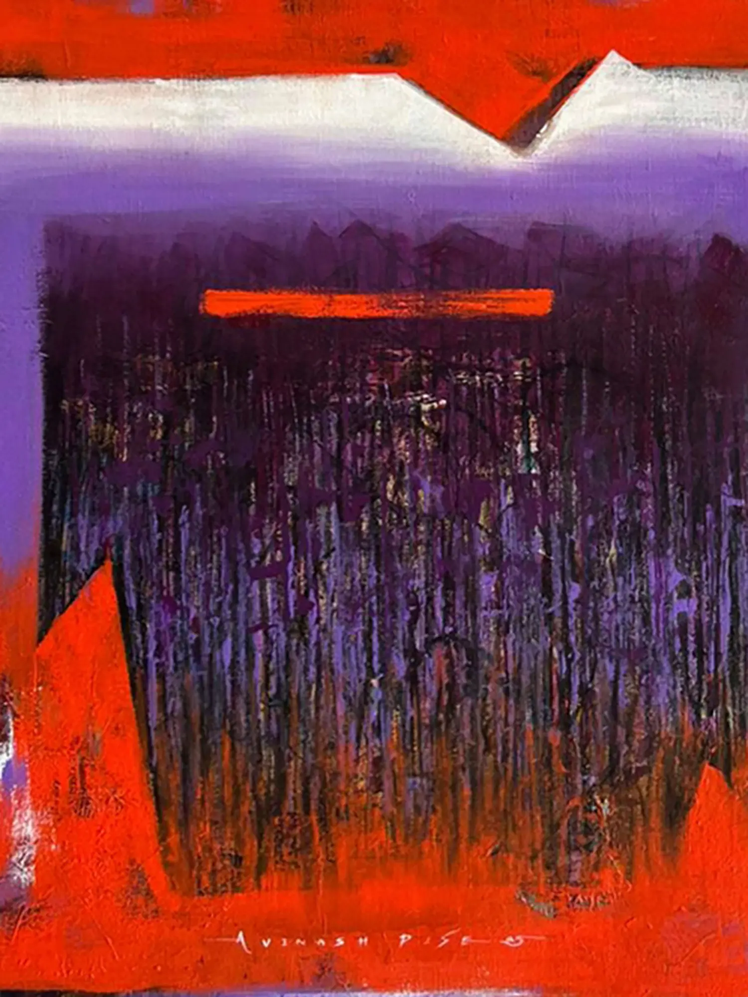 Features a striking abstract composition titled 'Inner Passage' by artist Avinash Pise.