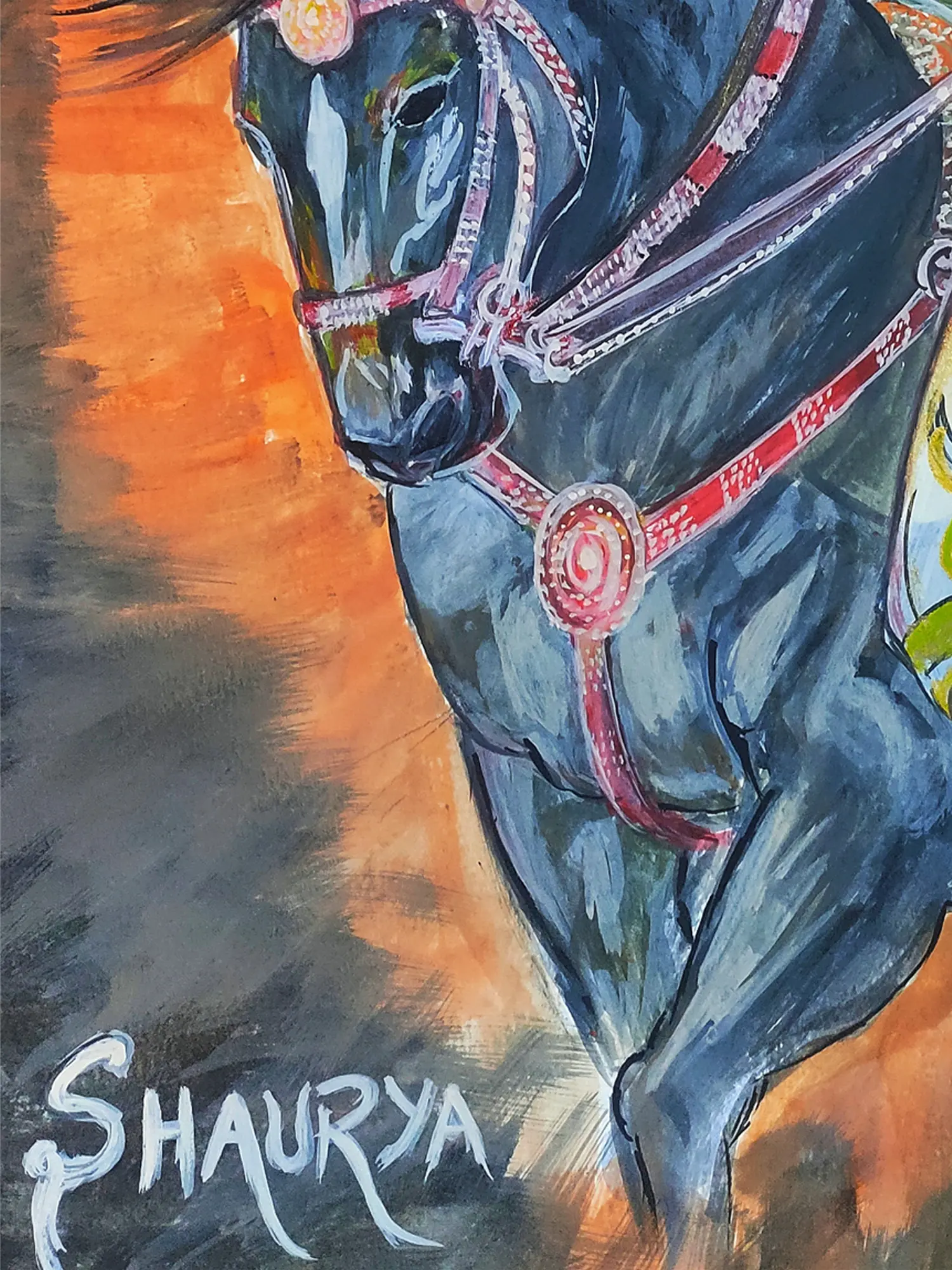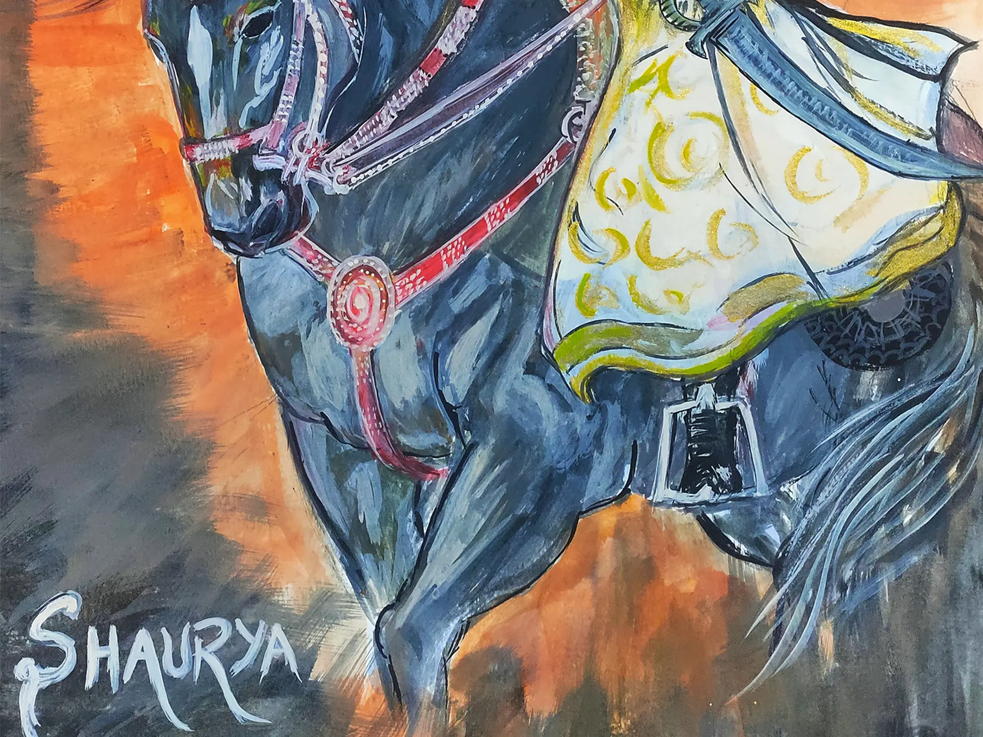 Each stroke of acrylic paint on canvas is a deliberate articulation of skill and passion. The artist, Chetan Gautam, employs a dynamic application of pigment, layering colors to create depth and texture that resonates with profound visual impact. The careful selection of materials ensures a durable foundation for this powerful narrative.