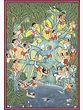 Though apparently the portrayal of a sport but with Krishna in its centre it becomes Krishna-lila which even when revealing an earthly act manifests divine dimensions. The underlying philosophy is apparent. The entire cosmos rotates round the Supreme Divine Principle which in the painting Krishna, incarnating the Great Principle, represents. It suggests that when Krishna is the axis of an activity even when it is earthly or ephemeral, it elevates into the divine ‘lila’ of Krishna and amounts to entire cosmic activity. With such divine dimensions in mind the artist has created the entire cosmos : Divinity, humans, animals, birds, the earth, the sky and water, on his canvas.