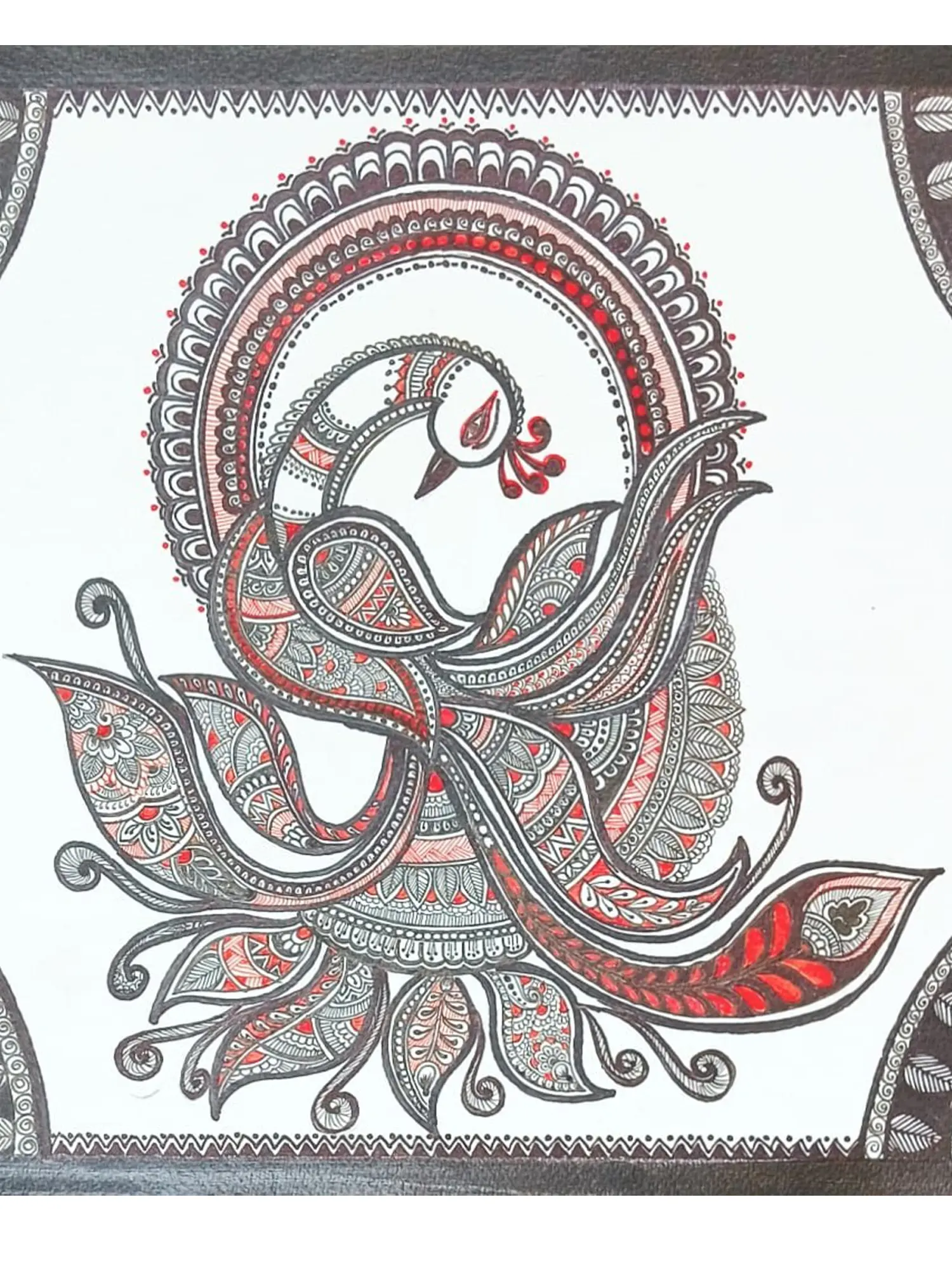 Explore the enchanting world of Kalamkari art with the captivating "Kalamkari Peacock," rendered in intricate pen strokes. This traditional Indian art form comes alive in vibrant hues, portraying the majestic peacock in all its grace. Each line and pattern tells a tale of heritage and craftsmanship, celebrating the rich tapestry of Indian culture. Let the graceful curves and intricate motifs of this piece adorn your space, infusing it with the timeless elegance of Kalamkari tradition.