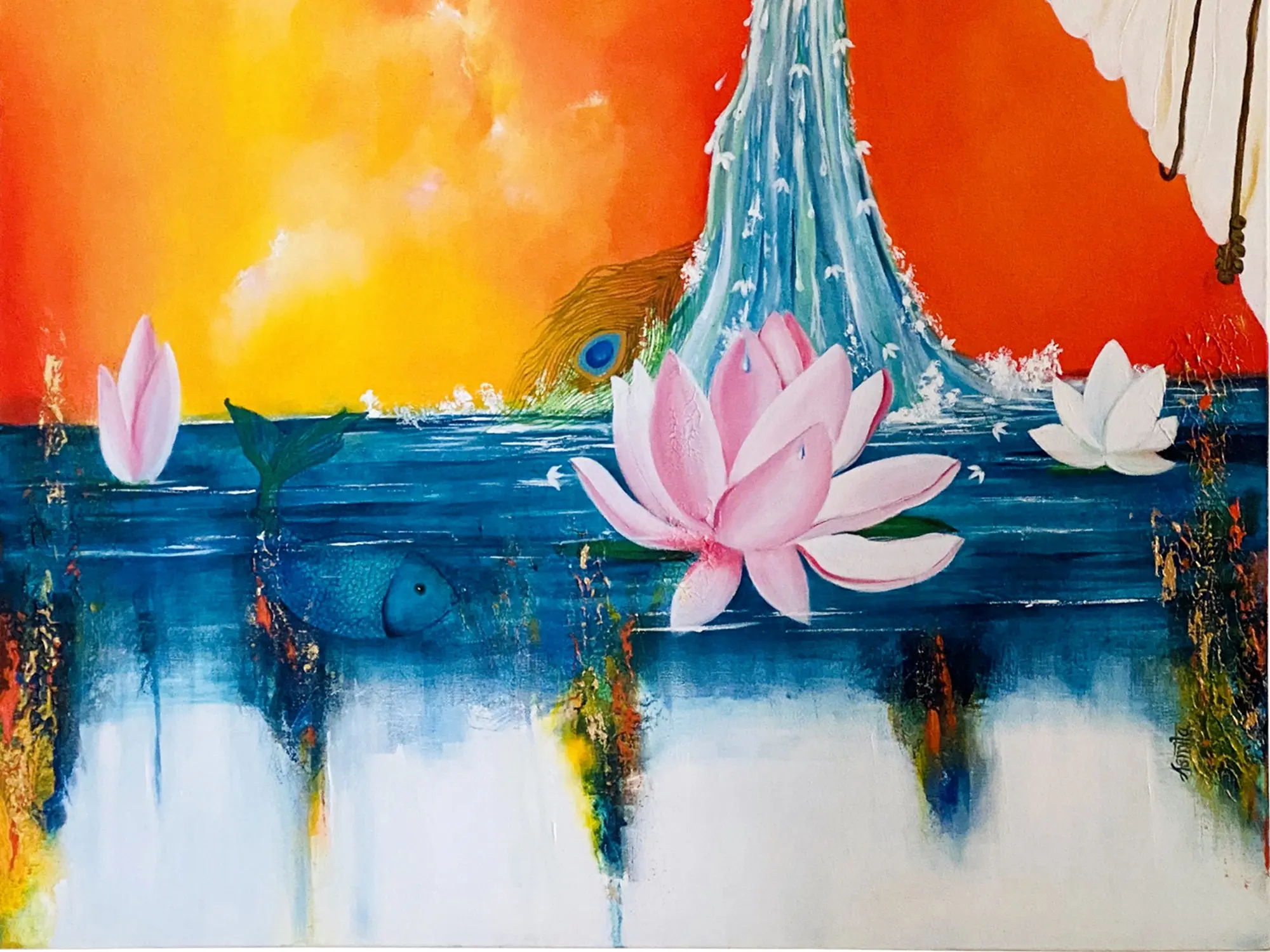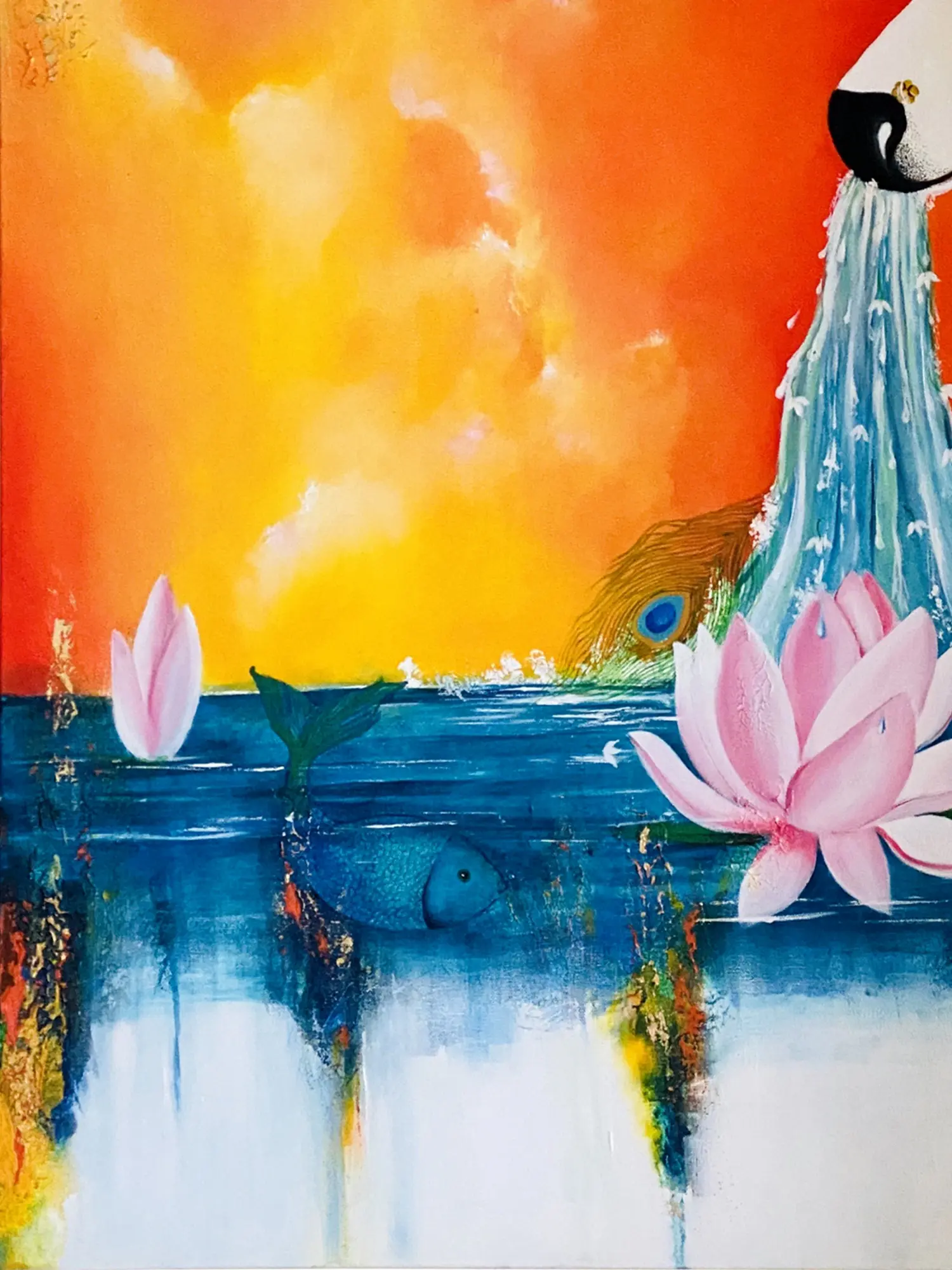 Created with rich acrylic pigments on a durable canvas, this piece is a testament to meticulous artistry. Asmita Patil's masterful application of color and form brings a vibrant energy to the composition. The textured layers and delicate brushwork reveal the dedication poured into each stroke, ensuring a piece that resonates with both visual depth and emotional resonance.