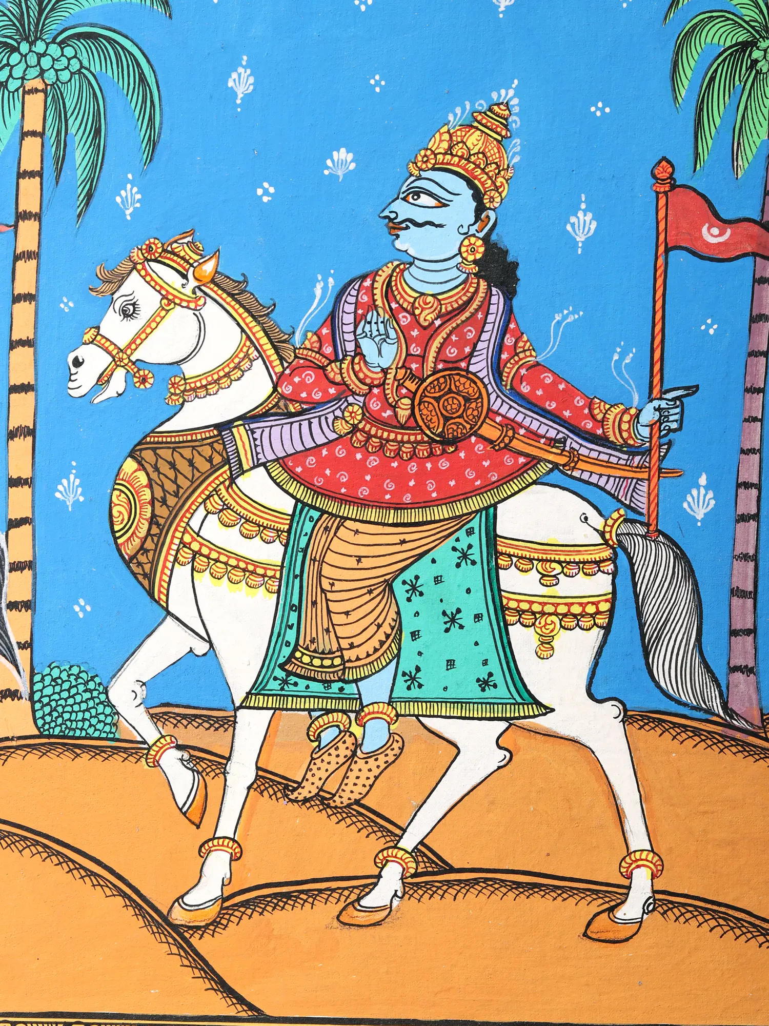 Each stroke on this handmade canvas is a testament to the enduring legacy of Pattachitra art, a traditional Indian folk art form. Created using time-honored techniques, this piece showcases the artist's mastery of watercolor on a finely prepared natural fabric. The dedication to preserving traditional methods ensures that you receive a work of art that is not only beautiful but also deeply authentic and rich in cultural heritage.
