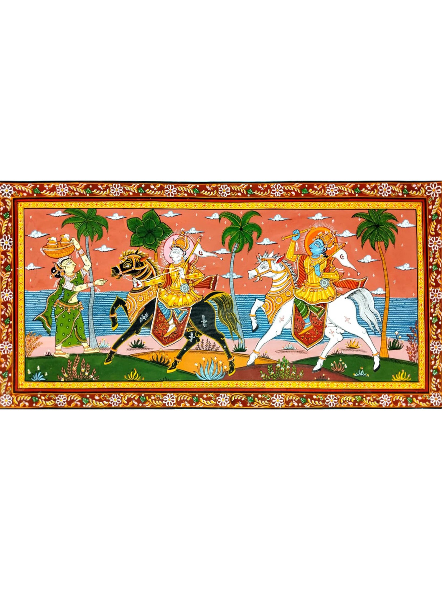 Kanchi Abhijan (Jagannath, Baladev and Gajapati King with Milkmaid Manika) | Patachitra Painting