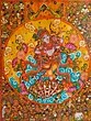 This magnificent Kerala mural painting is more than just a work of art; it is a conduit to ancient stories and spiritual devotion. The use of acrylic on canvas ensures the longevity of these vibrant colors, allowing the divine narrative to grace your walls for years to come. Whether you are a collector of Indian art, a devotee seeking a focal point for your spiritual practice, or simply someone who appreciates the power of masterful storytelling through visual mediums, this painting is sure to be a treasured addition to your home, radiating an aura of divine grace and timeless beauty.