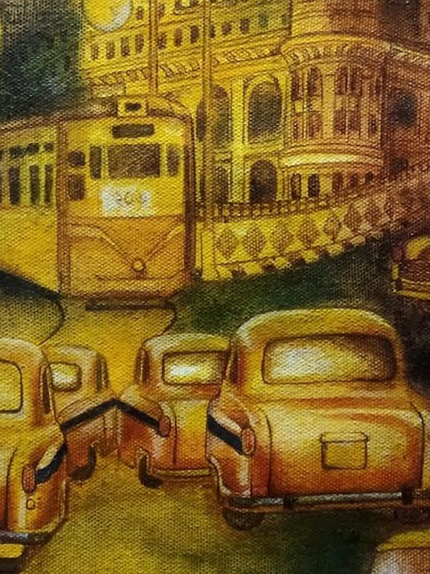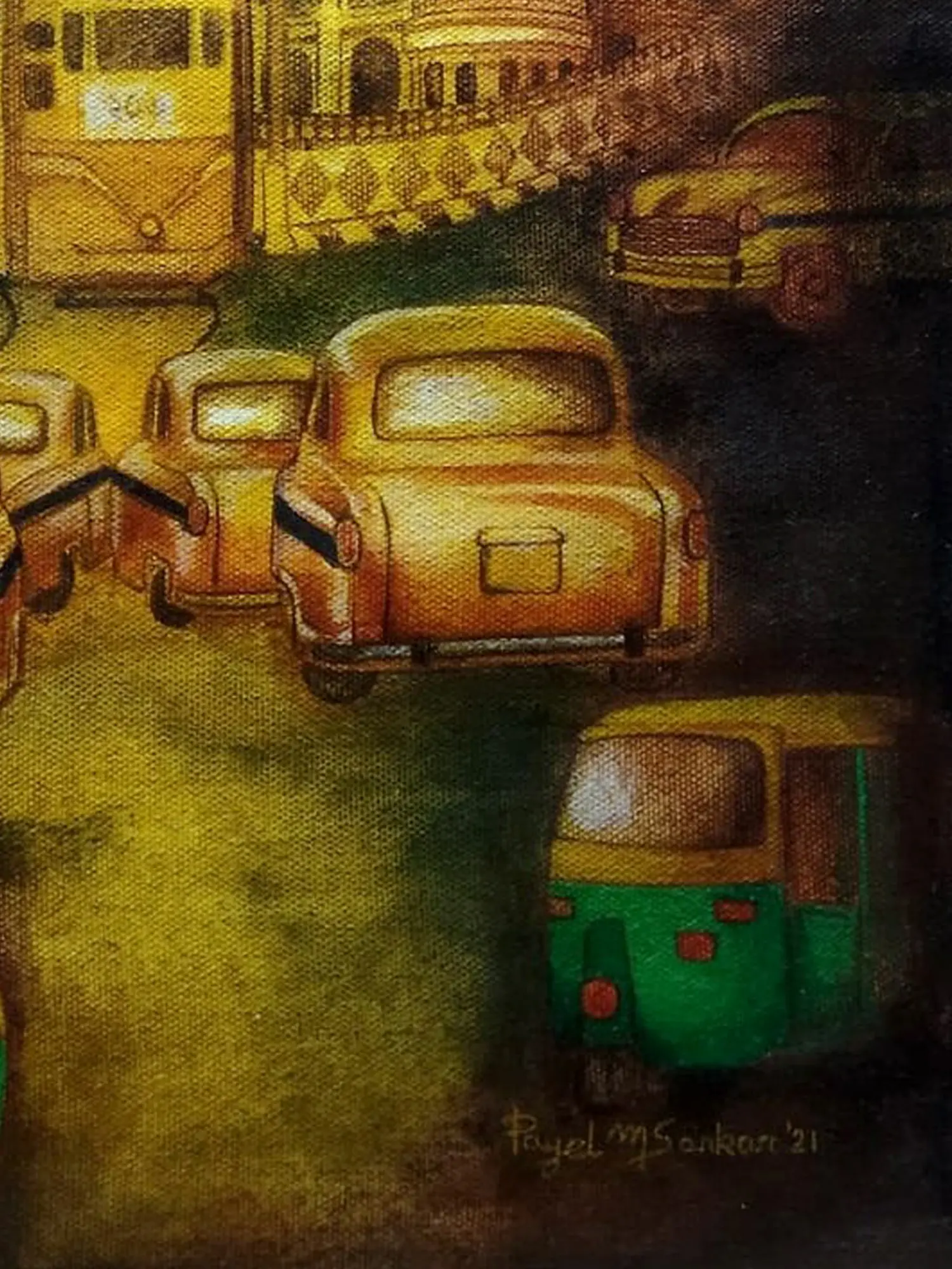 Taxis On Kolkata Road | Acrylic On Canvas | By Payel Mitra