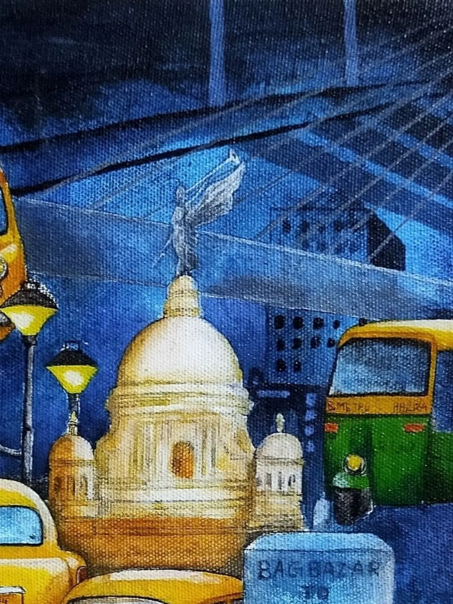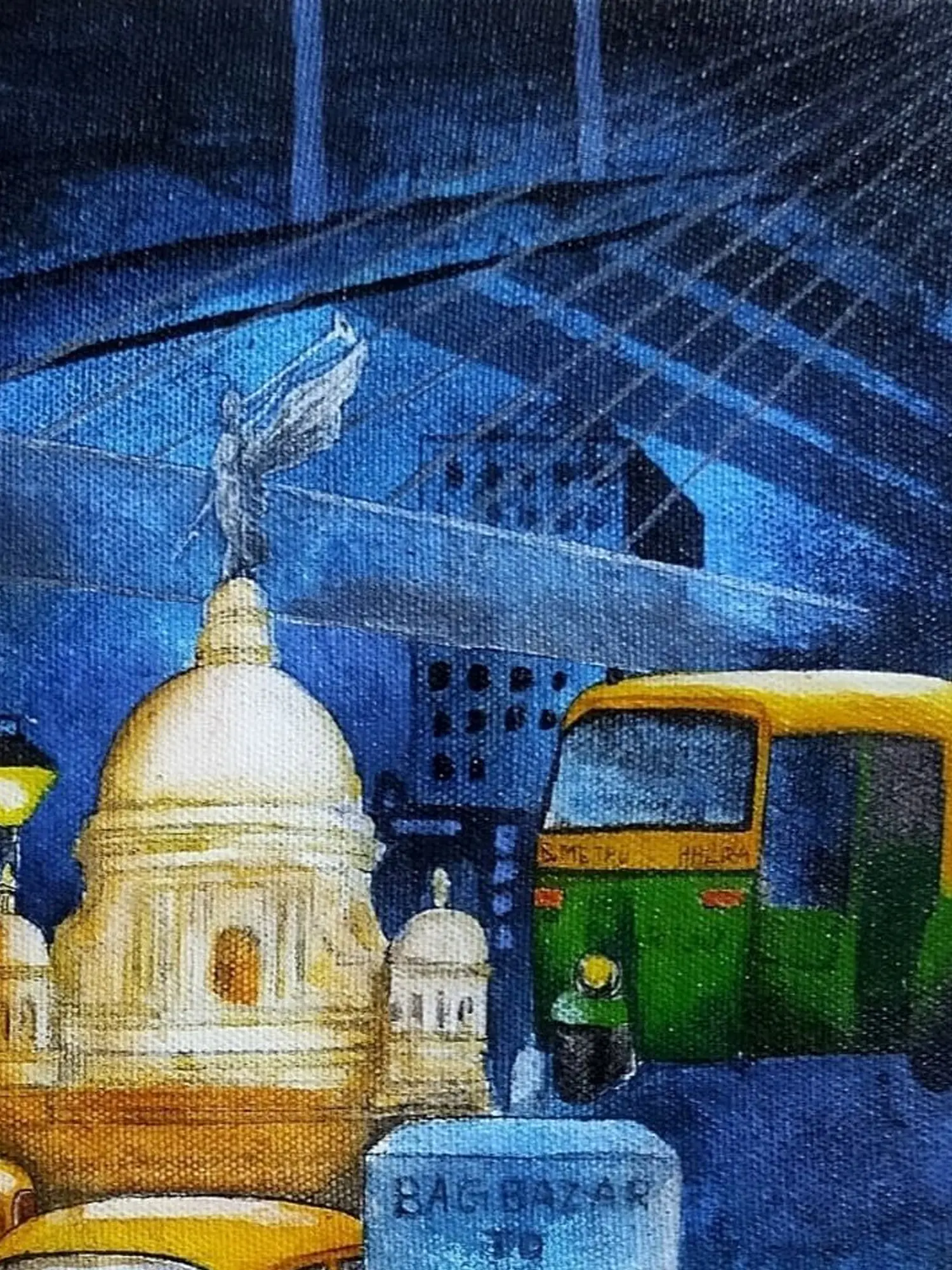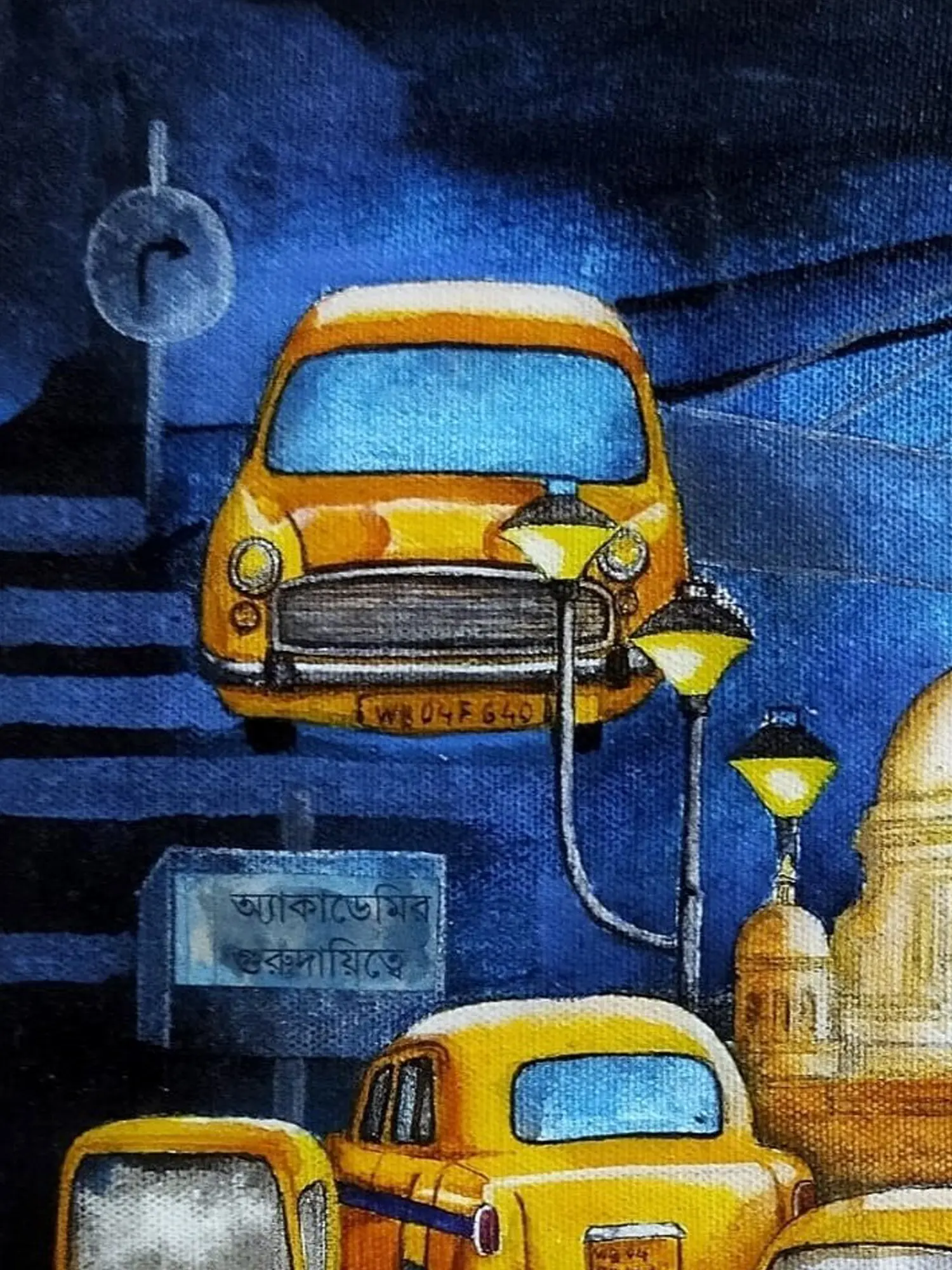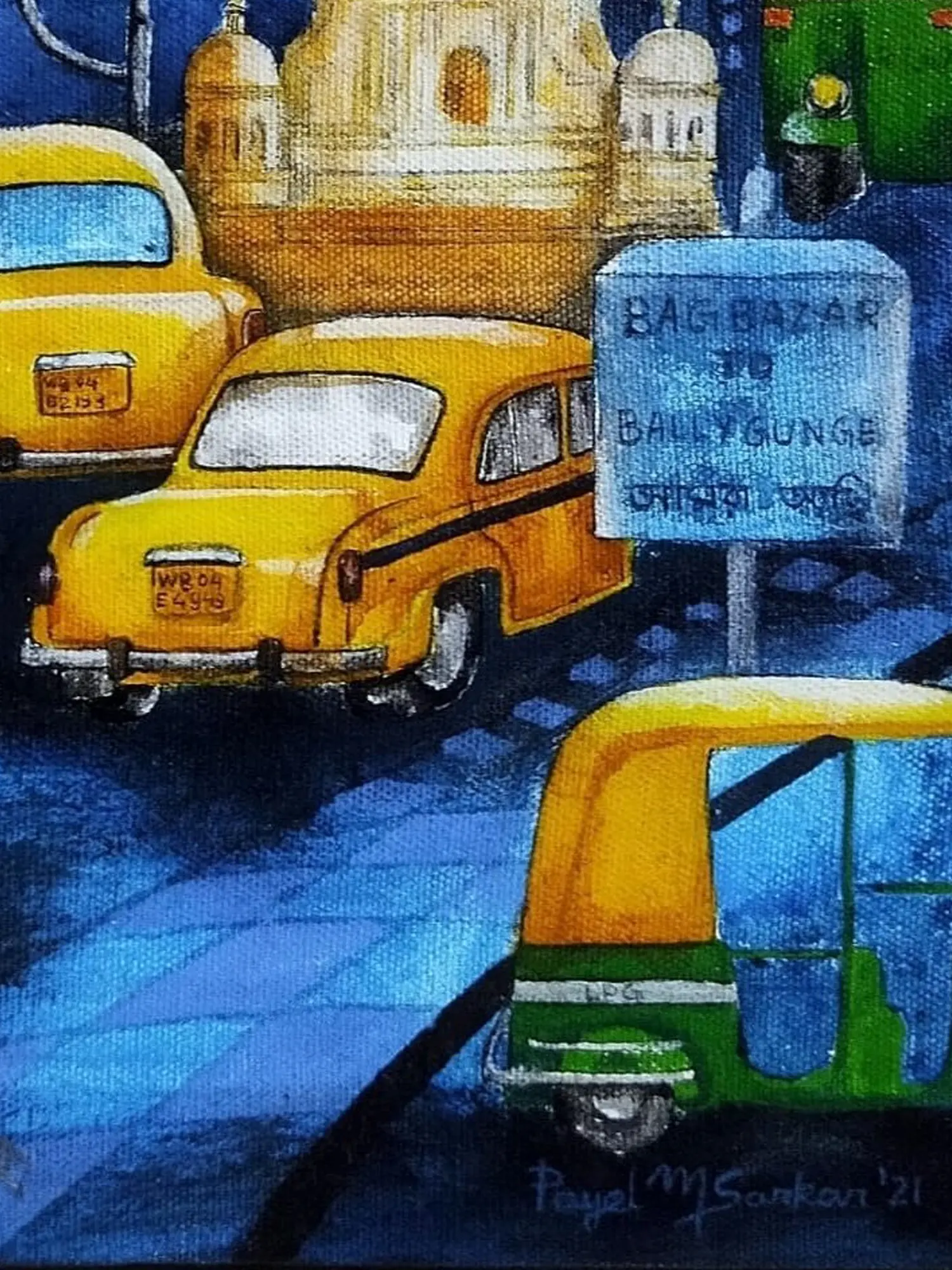 Kolkata Vehicles Running In Lane | Acrylic On Canvas | By Payel Mitra