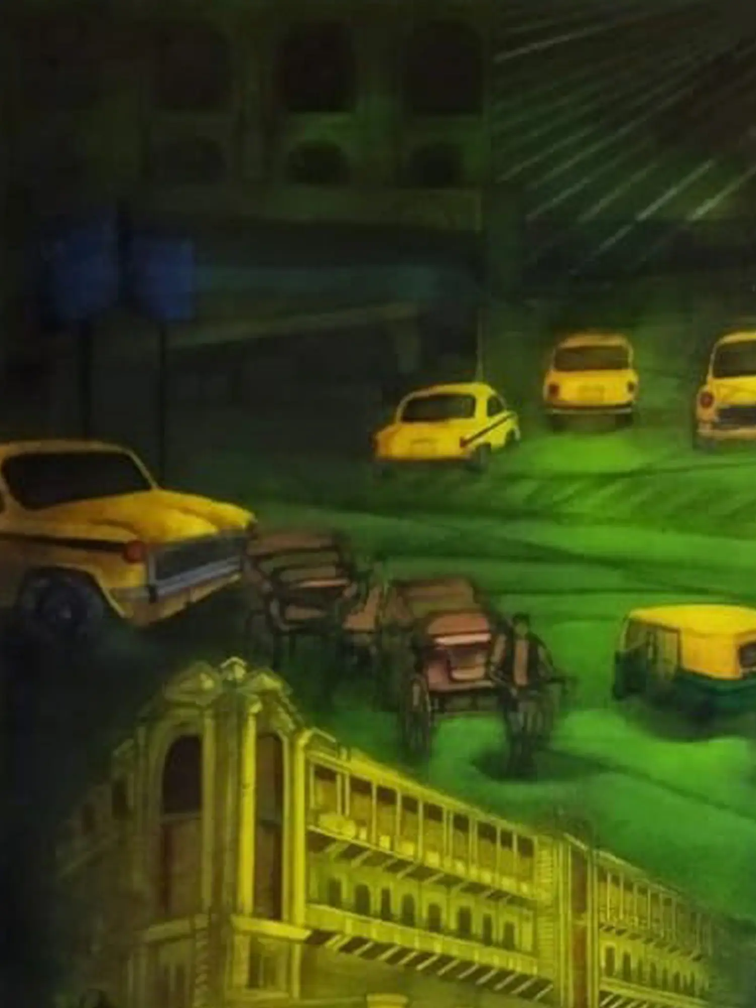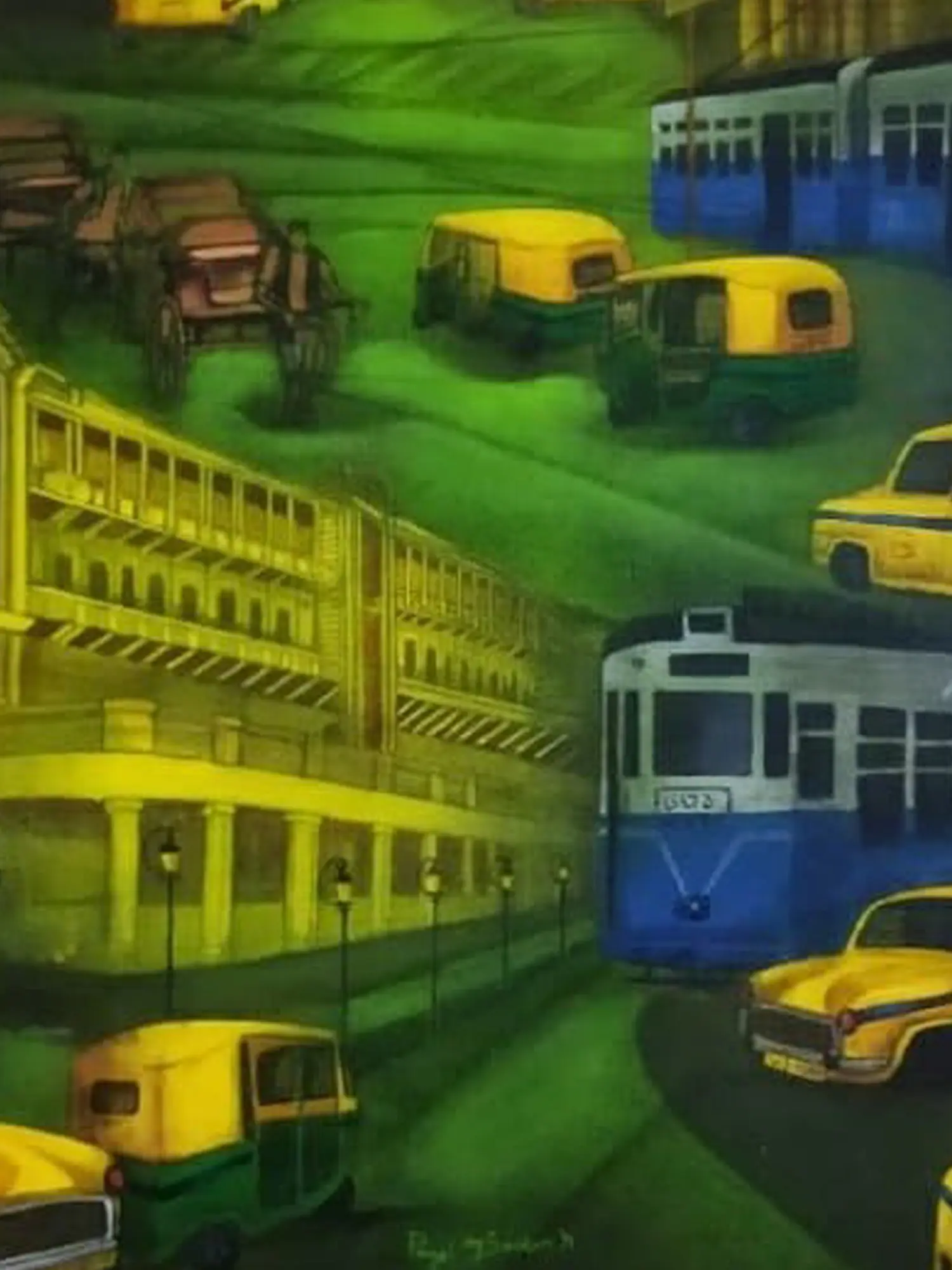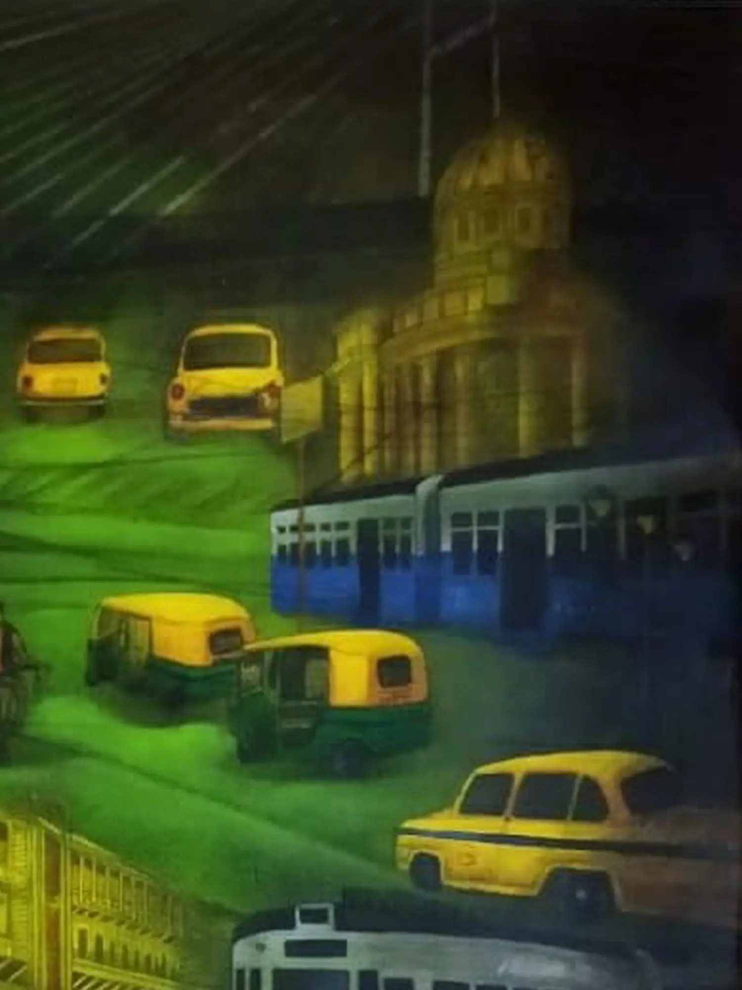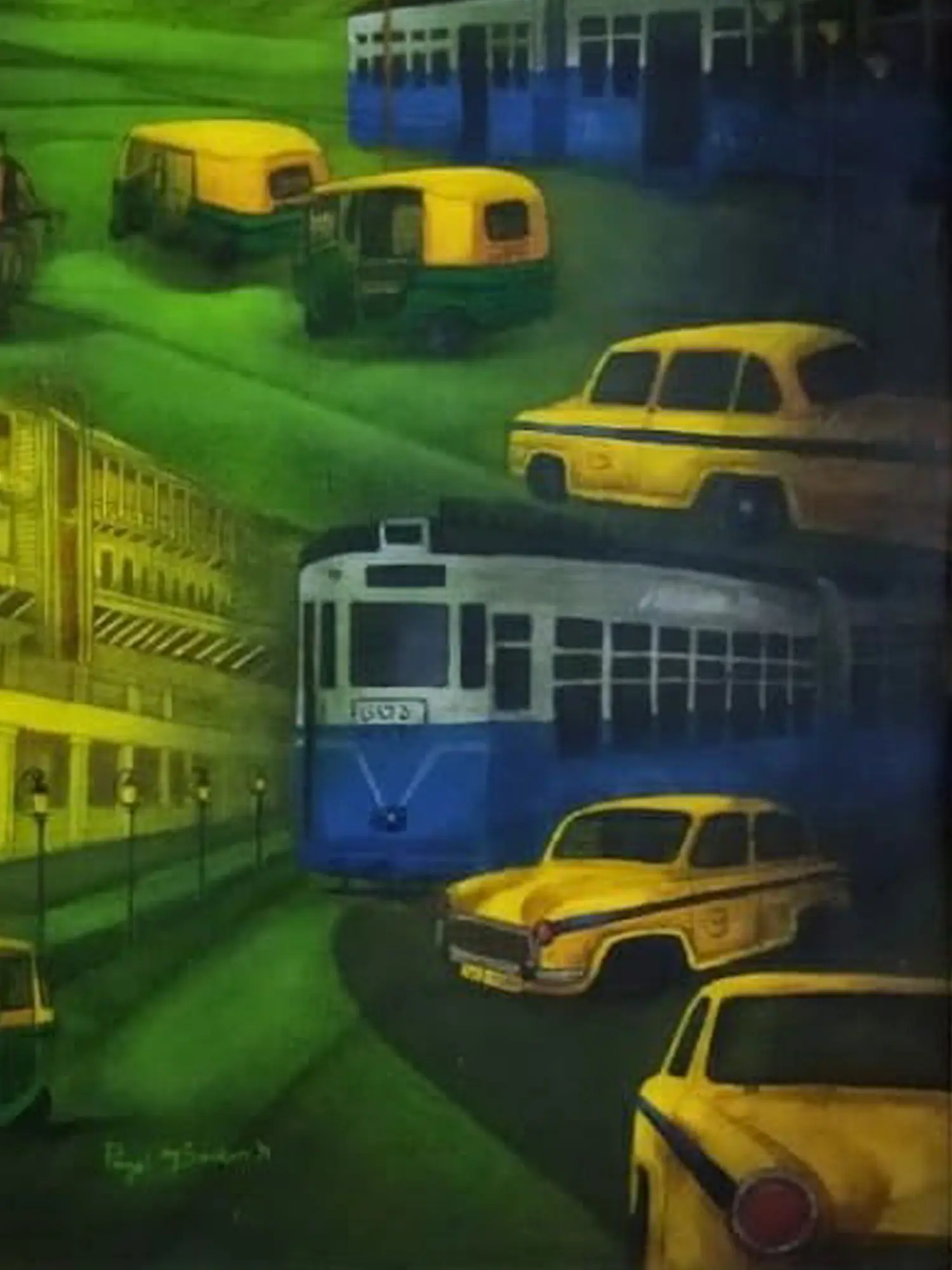 Taxis On Kolkata Road | Acrylic On Canvas | By Payel Mitra