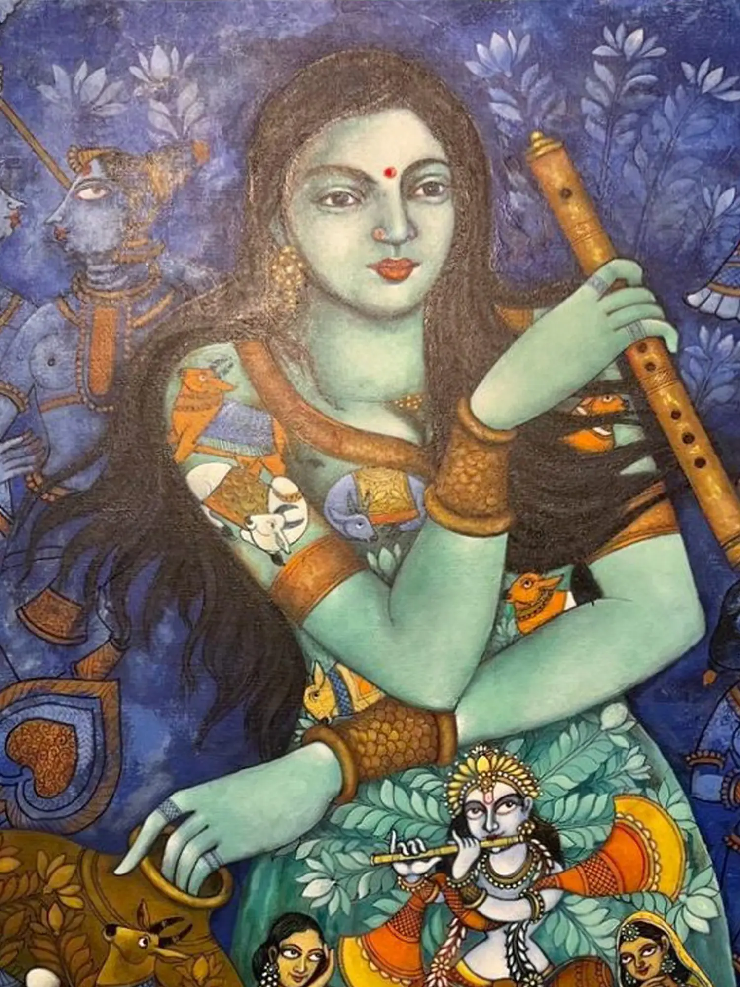 Lord Krishna With Flute | Oil On Canvas | By Priya Bothra