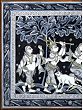 The artist now makes a double-lined border on all four sides of the canvas. The local artists are so expert in painting that they do not draw figures and motifs with pencil but directly draw them with a brush. The paint brushes that the painters use are made of the hair of domestic animals, a bunch of which is tied to the end of a bamboo stick. The figures are now painted with natural colors using the indigenous brushes. The outline is thickened with black color.