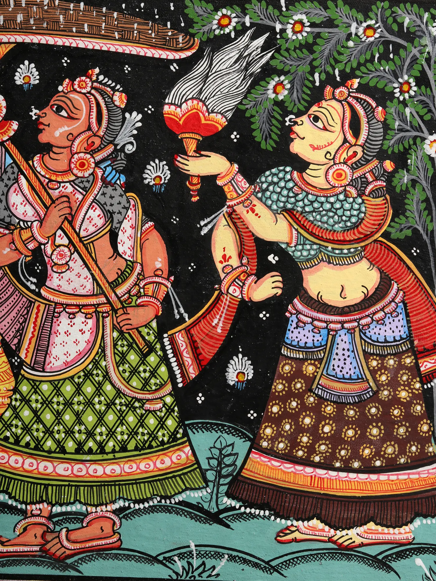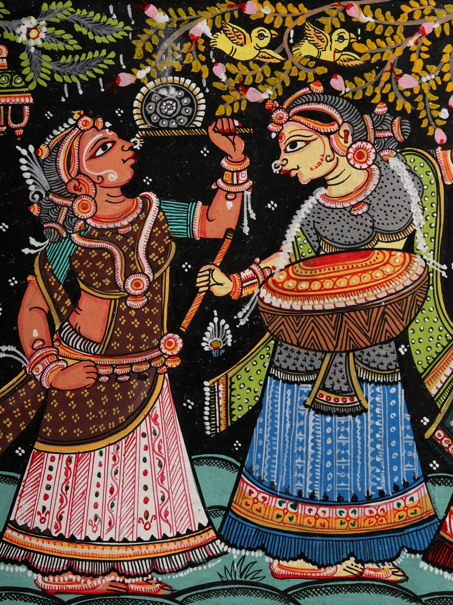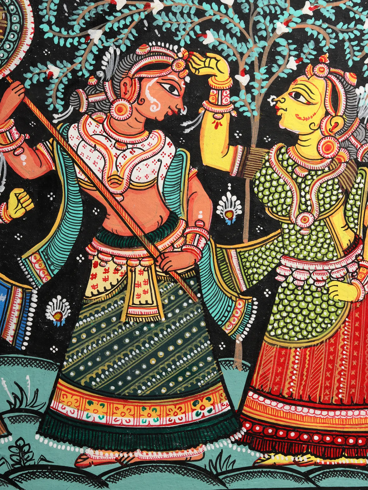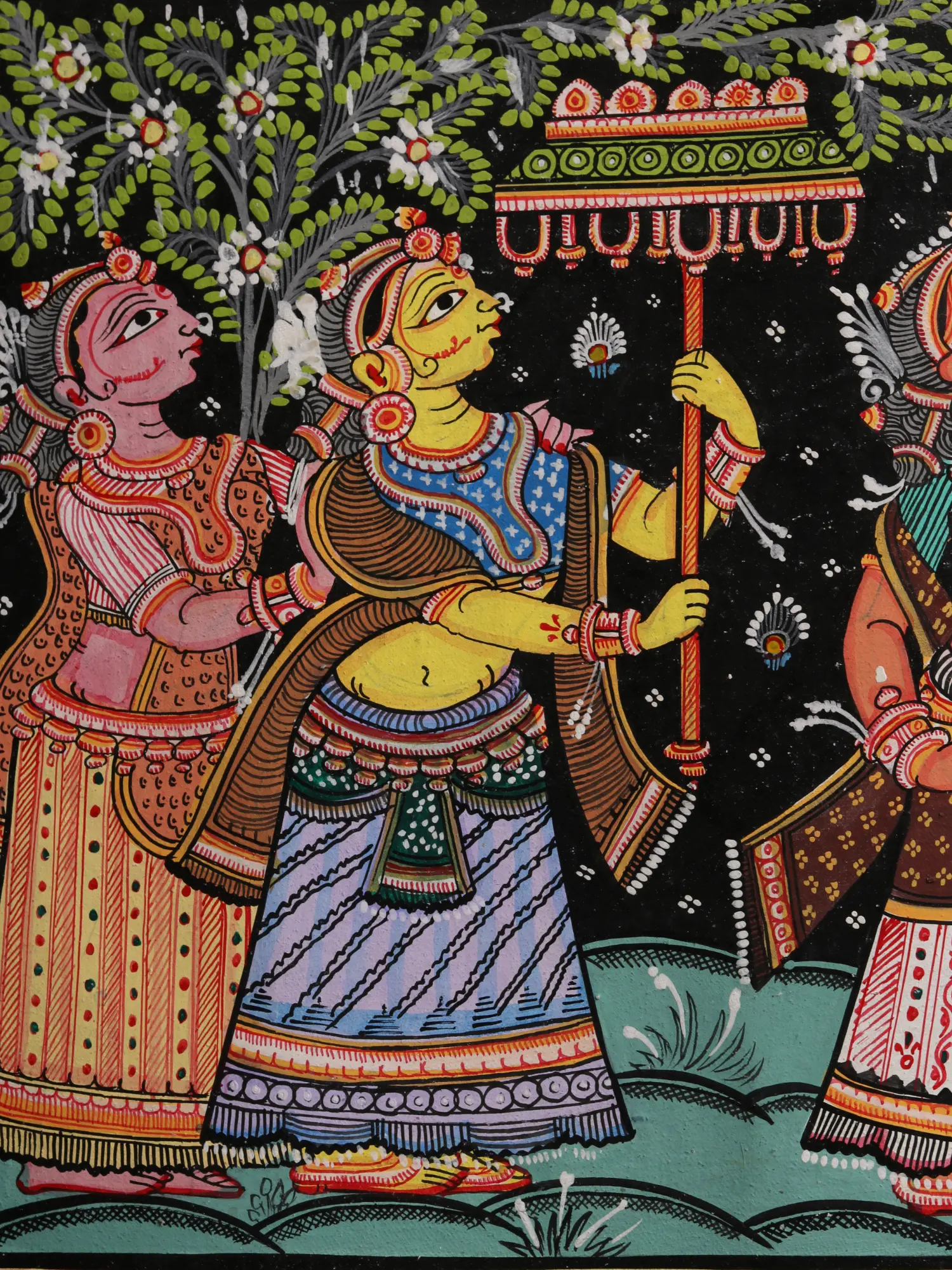 Radha Krishna with Gopis | Pattachitra Painting from Odisha