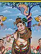 The composition is a testament to refined artistry, measuring 16 inches in height and 20 inches in width, a perfect scale for intimate admiration. You'll appreciate the serene expression on the central figure's face, the flowing drapery of the accompanying devotees, and the vibrant flora that frames this sacred scene. Each element, from the delicate floral motifs to the gracefully rendered serpentine form entwined in the tree, is brought to life with remarkable clarity and exquisite detail. The interplay of colors, from the soft azure sky to the lush greens of the earth, creates a harmonious and captivating visual experience.