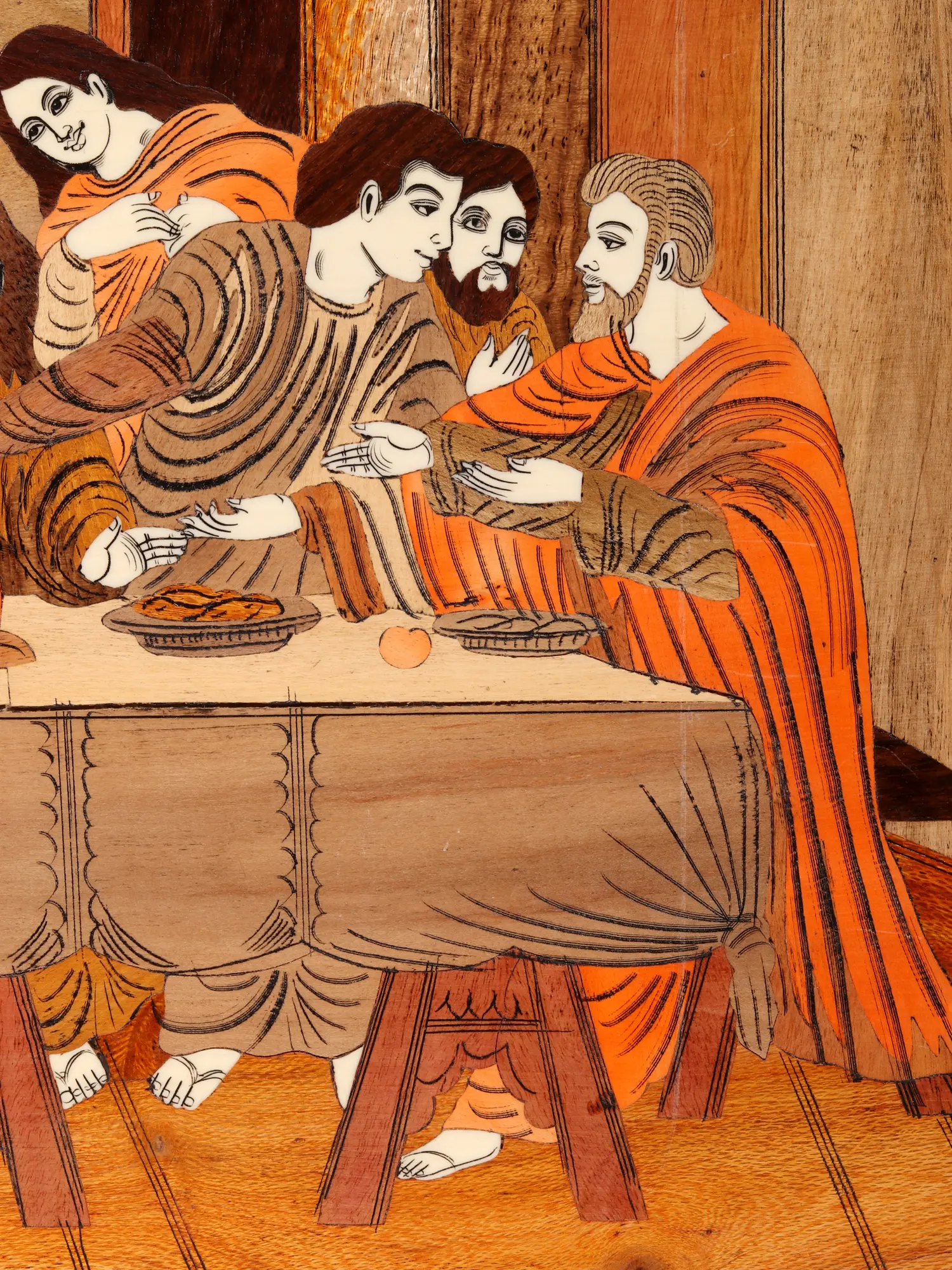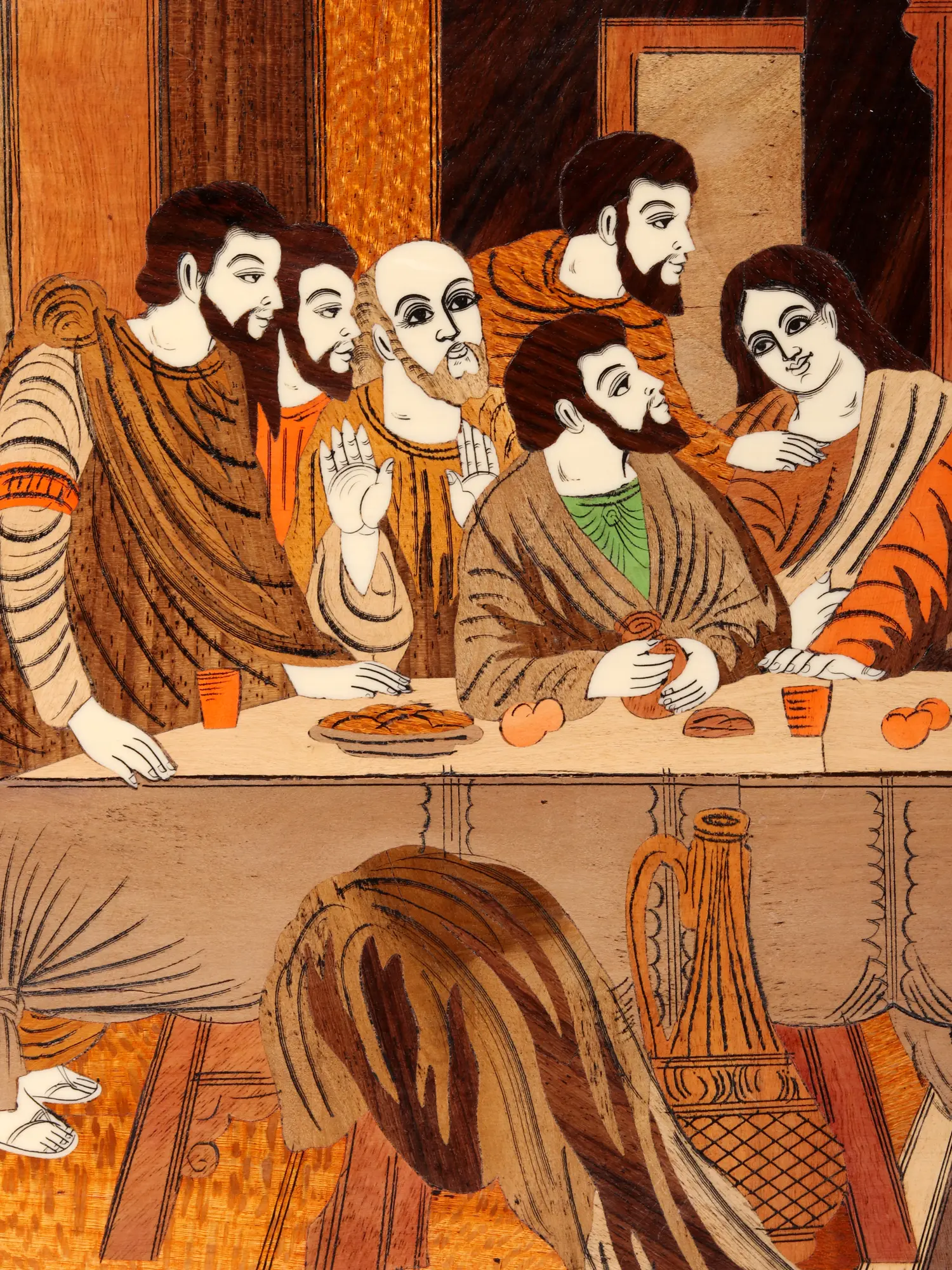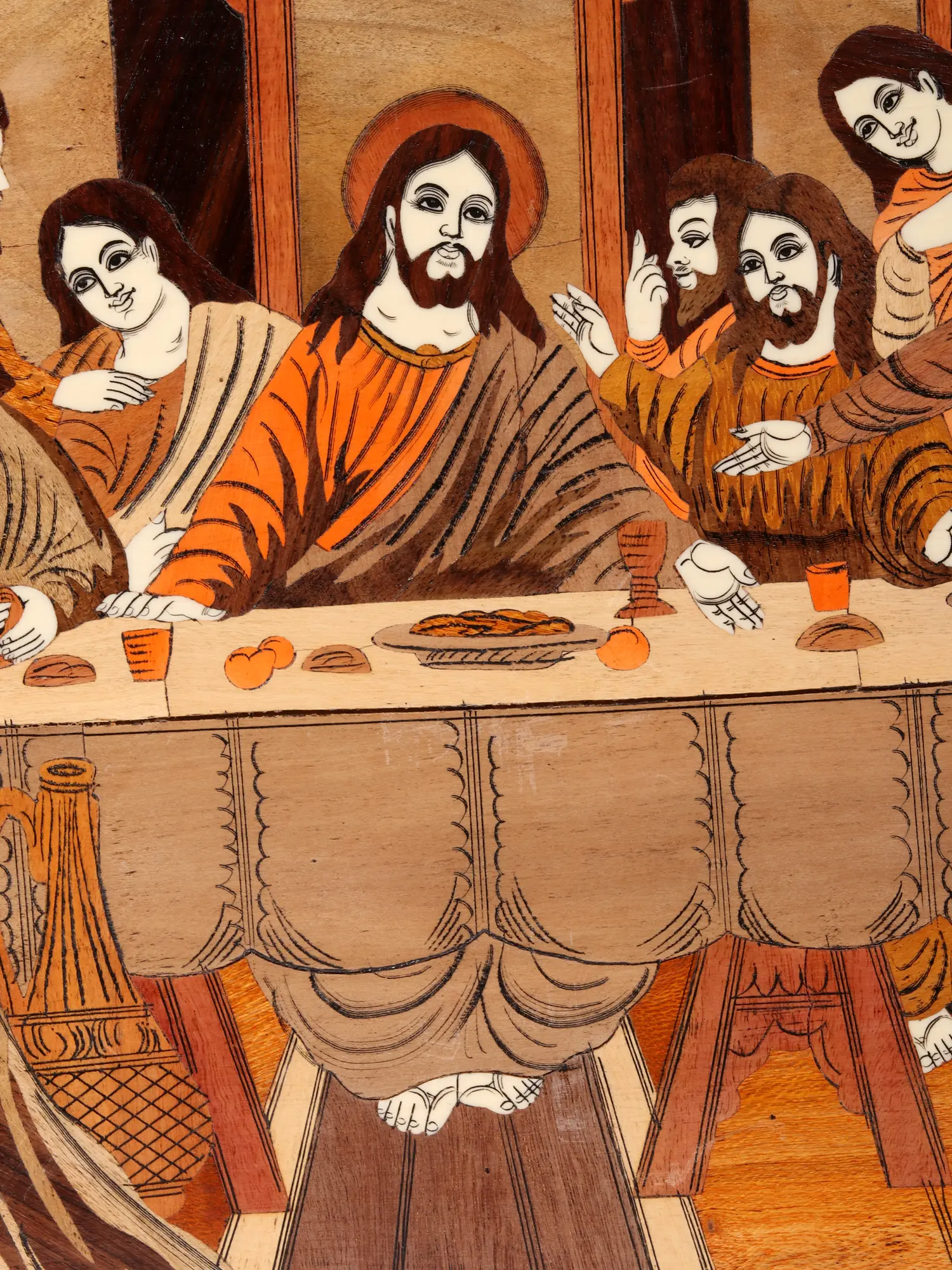 This depiction draws its inspiration from one of history’s most pivotal and revered events, symbolizing sacrifice, communion, and divine revelation. The composition, while traditional, is rendered with a unique artisanal interpretation that imbues the scene with a powerful emotional resonance. You'll feel the weight of the moment as you observe the figures, each gesture and gaze conveying a profound narrative. It connects you to a timeless story through the enduring medium of wood.