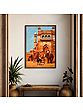 In the foreground is a confluence of mundane happenstances. A khachchar bore its master through the alleyways of Old Delhi, and they have emerged at this gate of the masjid. They are standing face-to-face with a lion, whose master wants nothing more than for them to get out of the way. Black and white shadows at the gate of the masjid, pious souls gently climbing up the steps to the halls within. Three youths who have spread a dhurrie at the foot of the steps have no qualms about the heat, nor do the father-and-son duo in the shade who have been running their shop next to the masjid for generations now.